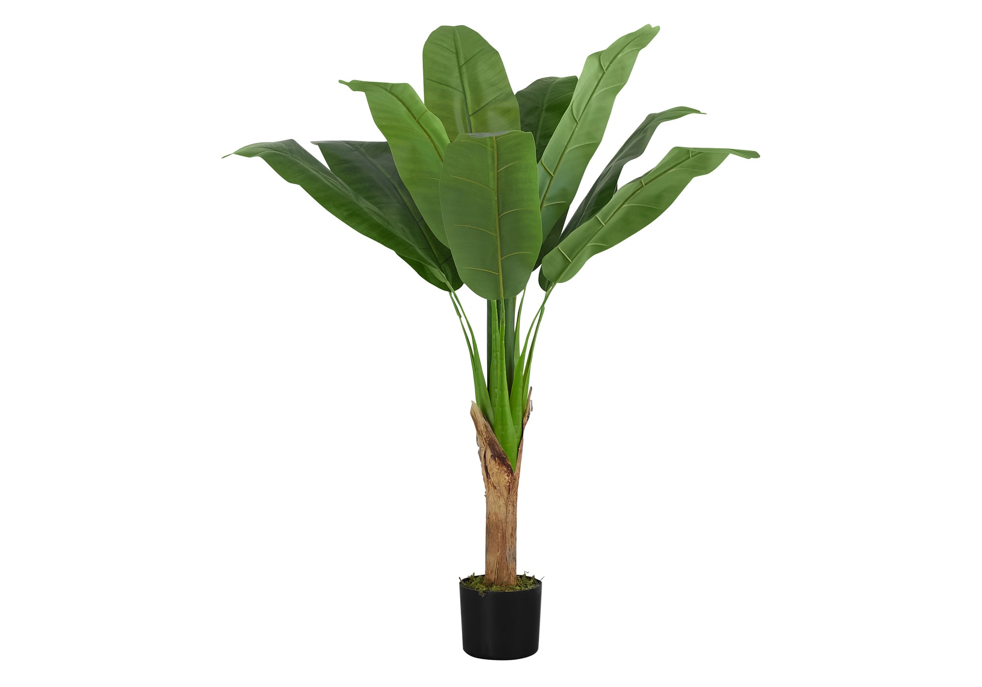 - Bananier artificiel qui mesure 43 po de haut avec 10 feuilles vertes réglables dans un pot noir de 5 po.