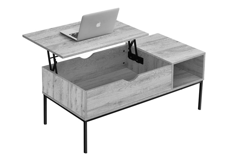 Cette table basse de style contemporain sera la pièce maîtresse de votre salon. Avec son cadre en métal noir élégant et durable et son cadre de 42 pouces. Long plateau rectangulaire dans une finition moderne d'aspect bois gris, c'est la combinaison parfaite de style et de praticité. Le plateau relevable à charnière pratique vous offre la possibilité de le rapprocher afin que vous puissiez travailler sur votre ordinateur portable, prendre un repas ou des collations, tout en offrant également un espace de rangement caché généreux pour les télécommandes, les livres et les magazines. Une fois le plateau facile à nettoyer remis en place, vous disposez d'une table à cocktail spacieuse pour vous divertir ! Un espace de stockage supplémentaire est disponible avec la tablette latérale ouverte. Facile à assembler avec des instructions illustrées complètes et le matériel inclus, le tout bénéficie d'une garantie limitée de 5 ans contre les défauts de fabrication.
