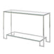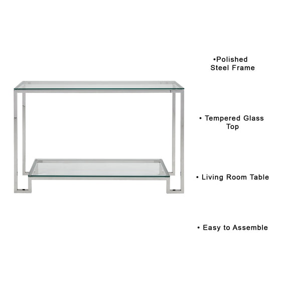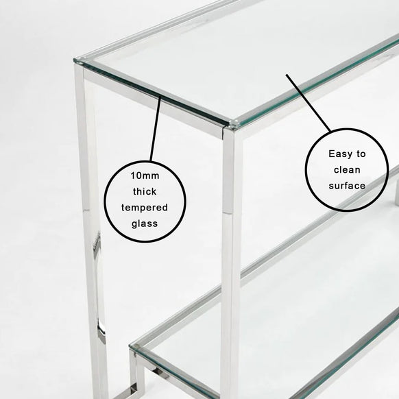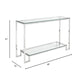 - Table console en verre moderne et chic avec une étagère inférieure en verre.
