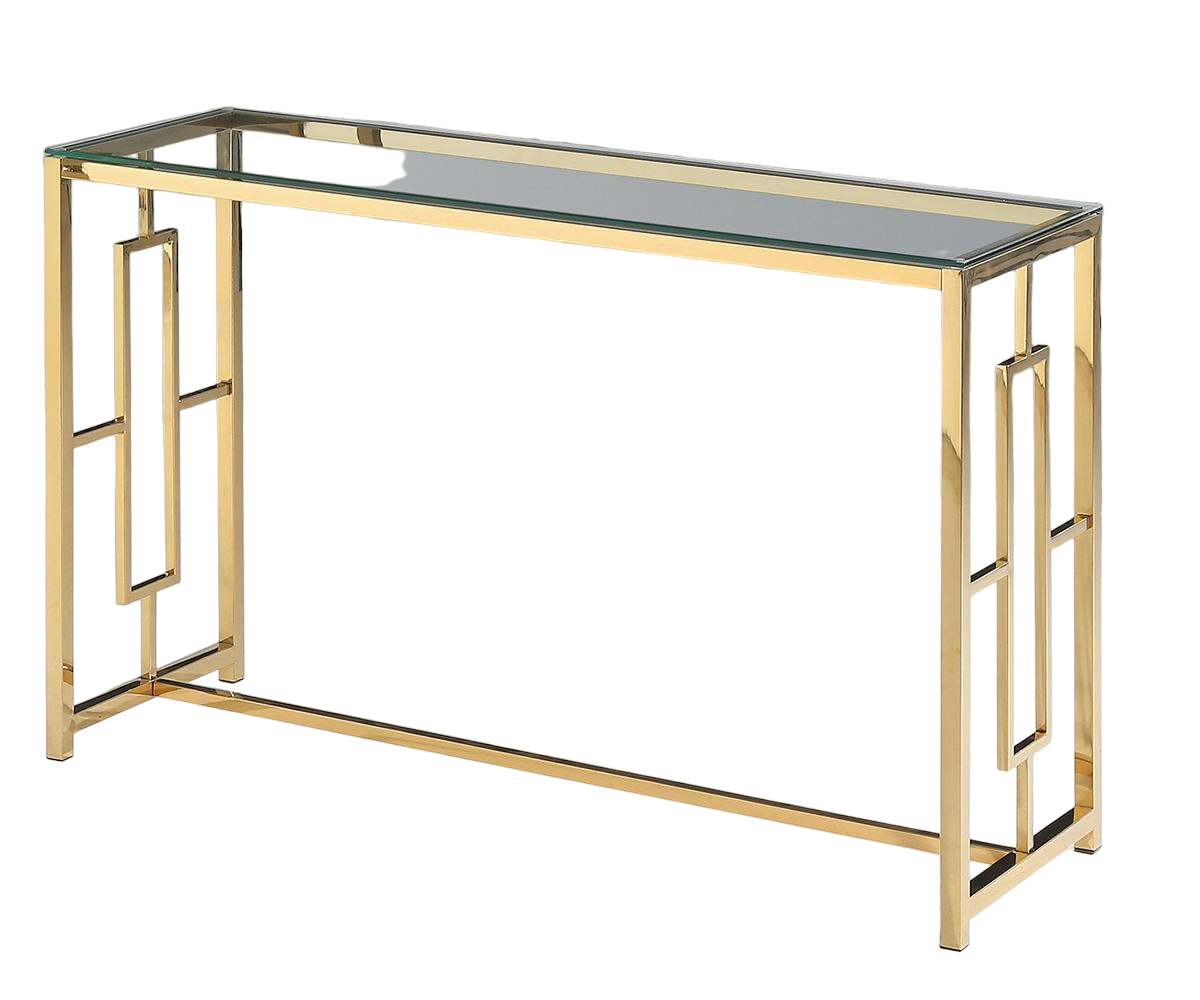 - Finition dorée sophistiquée avec une surface en verre trempé transparent.