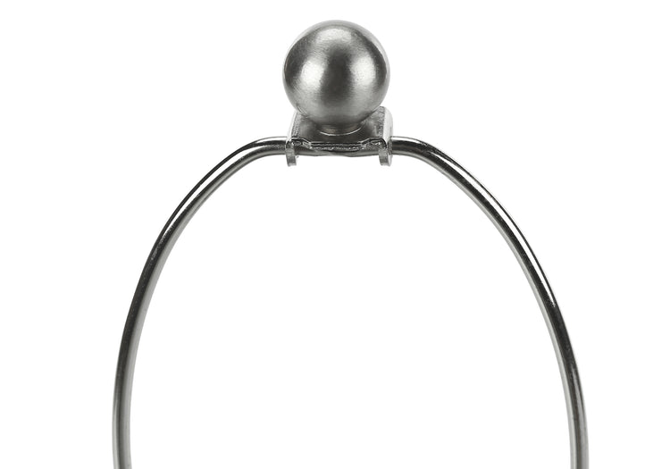 - La base empilée et ronde en céramique contemporaine, avec un abat-jour chic en tissu de lin ivoire et rehaussée d'un fleuron rond en métal argenté sur le dessus, apporte un raffinement moderne à une pièce.