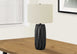 - Apportez un style sophistiqué à votre espace contemporain avec cette lampe de table texturée en céramique noire de 25 po de hauteur équipée d'un abat-jour tambour en lin ivoire et d'un fleuron noir sur le dessus, fixé à l'aide d' un cordon noir de 6 pieds de long.