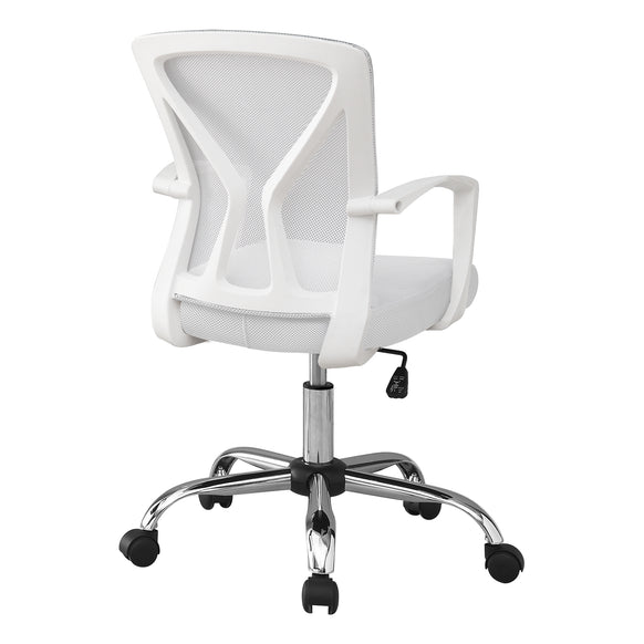 Cette chaise de bureau à dossier mi-hauteur avec inconvénient fixe en blanc à votre dos si vous avez besoin d'une chaise de bureau de soutien, confortable et élégante. Le dossier a une forme incurvée et ergonomique qui favorise une bonne posture. Le siège est profond et extra large avec un remboursement généreux pour offrir une sensation d'espace. Le tissu en filet blanc qui permet à l'air de recouvrir le siège et le dossier pivotants. L'extérieur du dossier présente des supports à la fois décoratifs et fonctionnels. Ces supports ajoutent un intérêt visuel et peuvent être utilisés comme poignées lorsque vous déplacez cette chaise à hauteur réglable qui a une base à 5 étoiles finie en chrome, avec des roulettes noires pour la mobilité. Idéale pour les petits espaces, cette chaise apporte un style épuré à votre bureau.