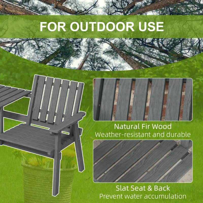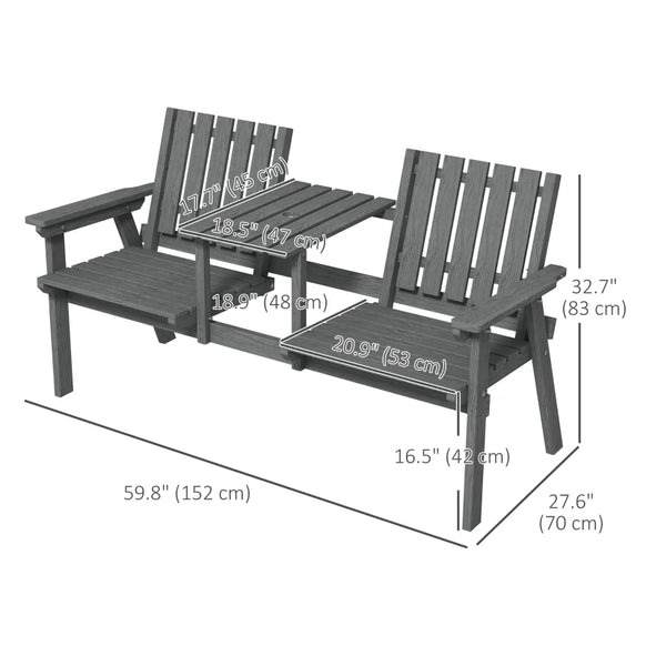 Banc d'extérieur avec table centrale : Offrez-vous quelques tasses de thé tout en conversant avec la personne à côté de vous. Notre banc de patio en bois présente un design convivial avec une petite table de discussion entre 2 sièges.