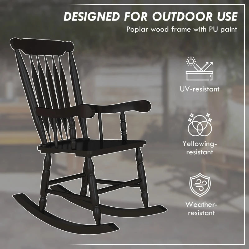 Chaises à bascule d'extérieur avec dossier haut, résistantes au jaunissement et aux UV, chaise à bascule en bois pour porche, jardin, balcon, noir