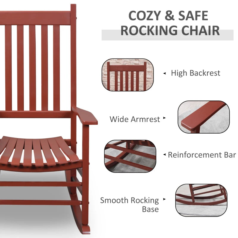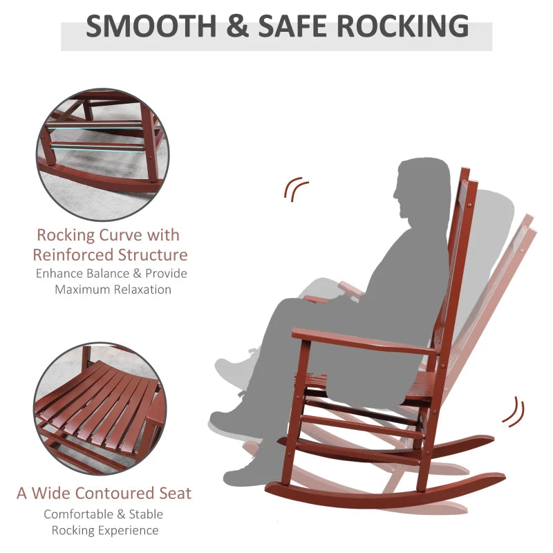 Conception confortable : un siège large, des accoudoirs et un dossier à lattes à dossier haut robuste, cette chaise à bascule en bois crée un endroit confortable pendant que vous vous balancez.