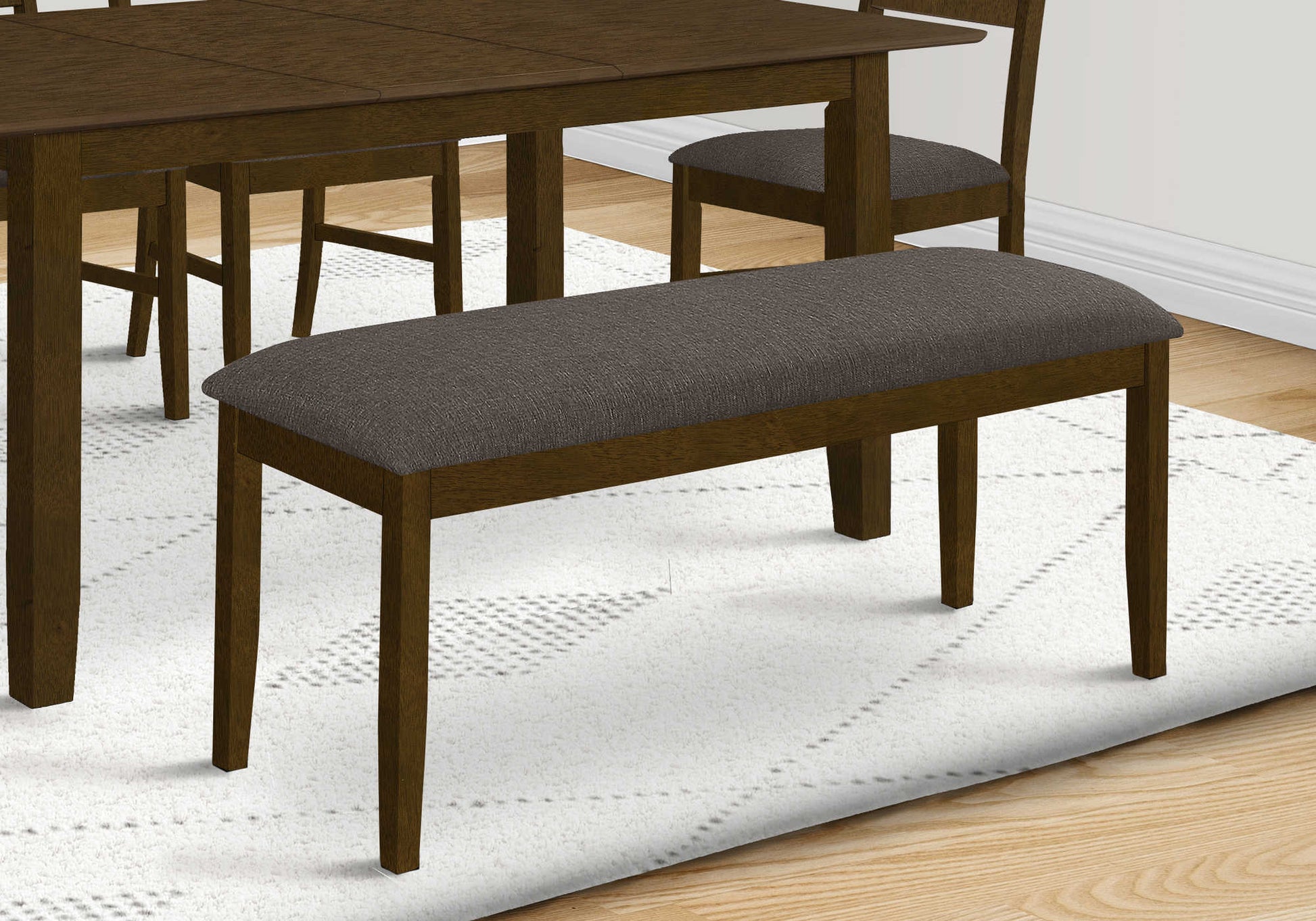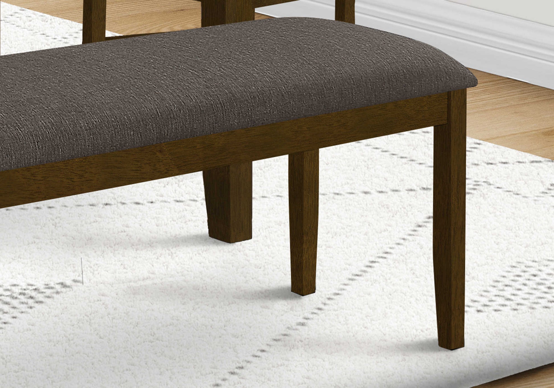 - Élégant et durable conçu 44quot; banc rectangulaire avec une structure en bois massif brun noyer et un siège rembourré en tissu marron épais et rembourré de mousse.