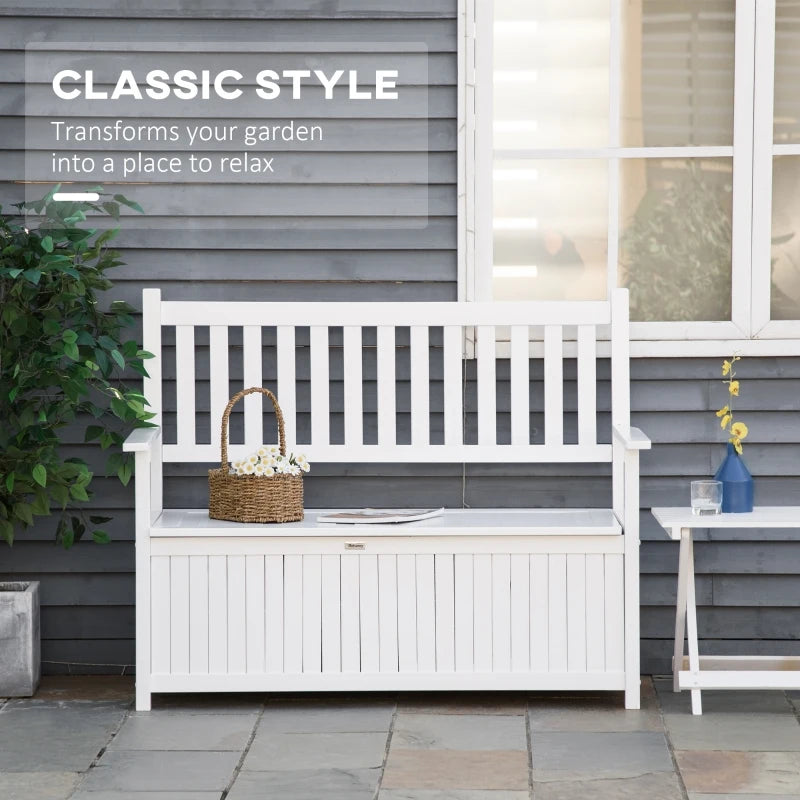 Banc de jardin de rangement 2 places, meubles de patio extérieur, coffre de terrasse avec intérieur pour patio, porche ou balcon, blanc