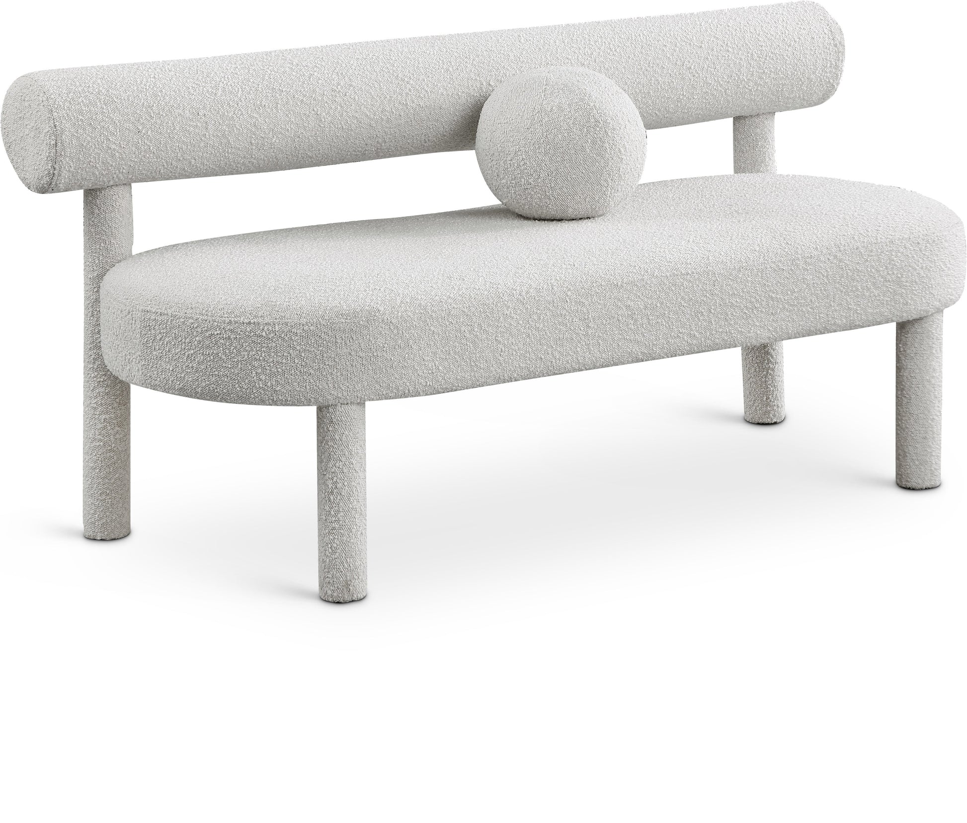 Ajoutez des sièges supplémentaires là où vous en avez le plus besoin avec ce banc en tissu bouclé Parlour. Somptueusement conçu pour bercer votre dos et réconforter votre corps pendant que vous êtes assis, ce banc est parfait pour l'entrée ou le foyer, le pied de votre lit ou partout où vous souhaitez créer un siège confortable. Le riche tissu bouclé est élégant pour la peau et doux au toucher. Un cadre en bois d'eucalyptus massif garantit des performances et une utilisation durables.