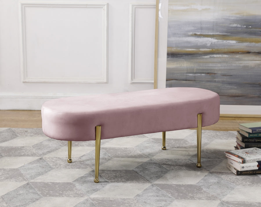 placez ce magnifique banc Gia au pied de votre lit ou dans votre entrée pour créer un endroit de fortune pour vous asseoir tout en enfilant vos chaussures. Le somptueux revêtement en velours et les pieds en métal doré font de ce banc un ajout glamour à votre espace. Le rembourrage est épais et doux, invitant les invités à s'asseoir et à se détendre. Ajoutez ce banc Gia à votre décor contemporain pour donner à toute votre pièce un look fastueux et haut de gamme avec un minimum d'effort.