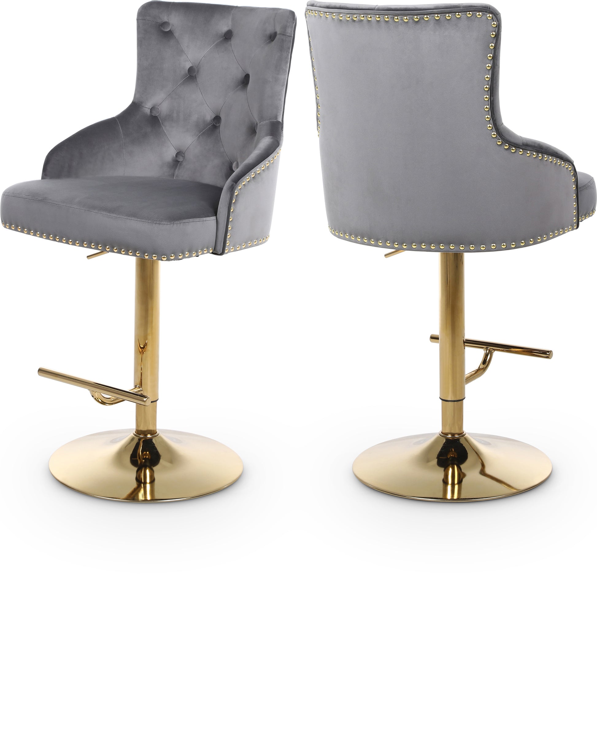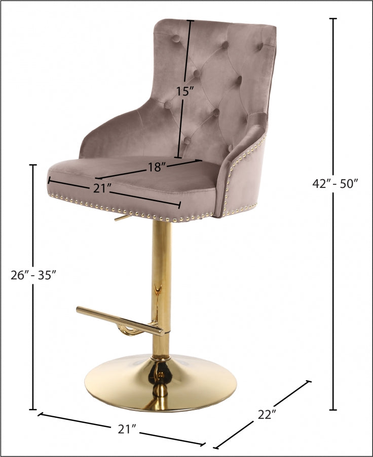 Ils voudront rester « jusqu'à l'heure de fermeture » lorsque vous les installerez dans ce tabouret de bar ou de comptoir réglable en velours Claude. Cette chaise peut être ajustée à la hauteur du bar ou du comptoir, ce qui en fait un ajout polyvalent à votre maison ou à votre bar. Le matériau en velours moelleux est élégant et sophistiqué, et la bordure cloutée dorée ajoute à son look royal. La base dorée est ultra contemporaine et l’ajout d’un repose-pieds est une belle touche.