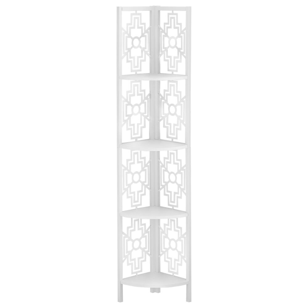 BIBLIOTHÈQUE - 62"H / BLANC / ÉTAGERE EN COIN MÉTAL BLANC