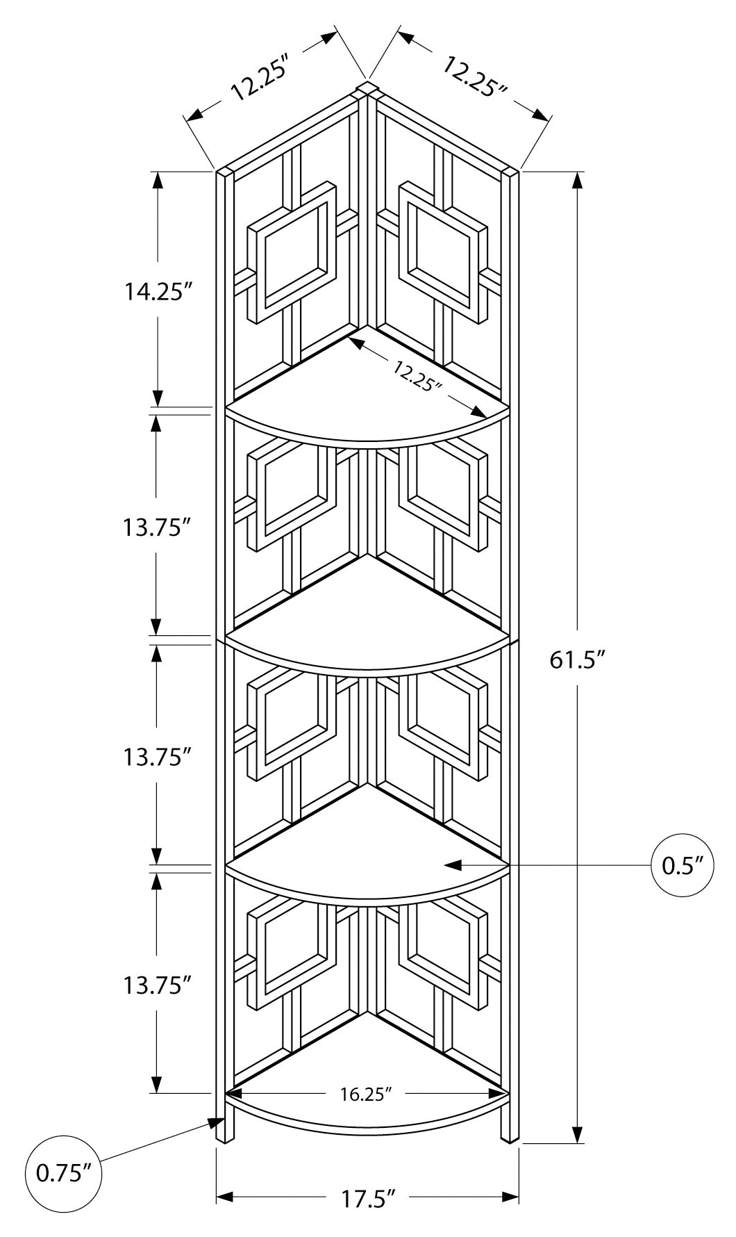 - Dimensions du produit : 18"L x 12"P x 62"H