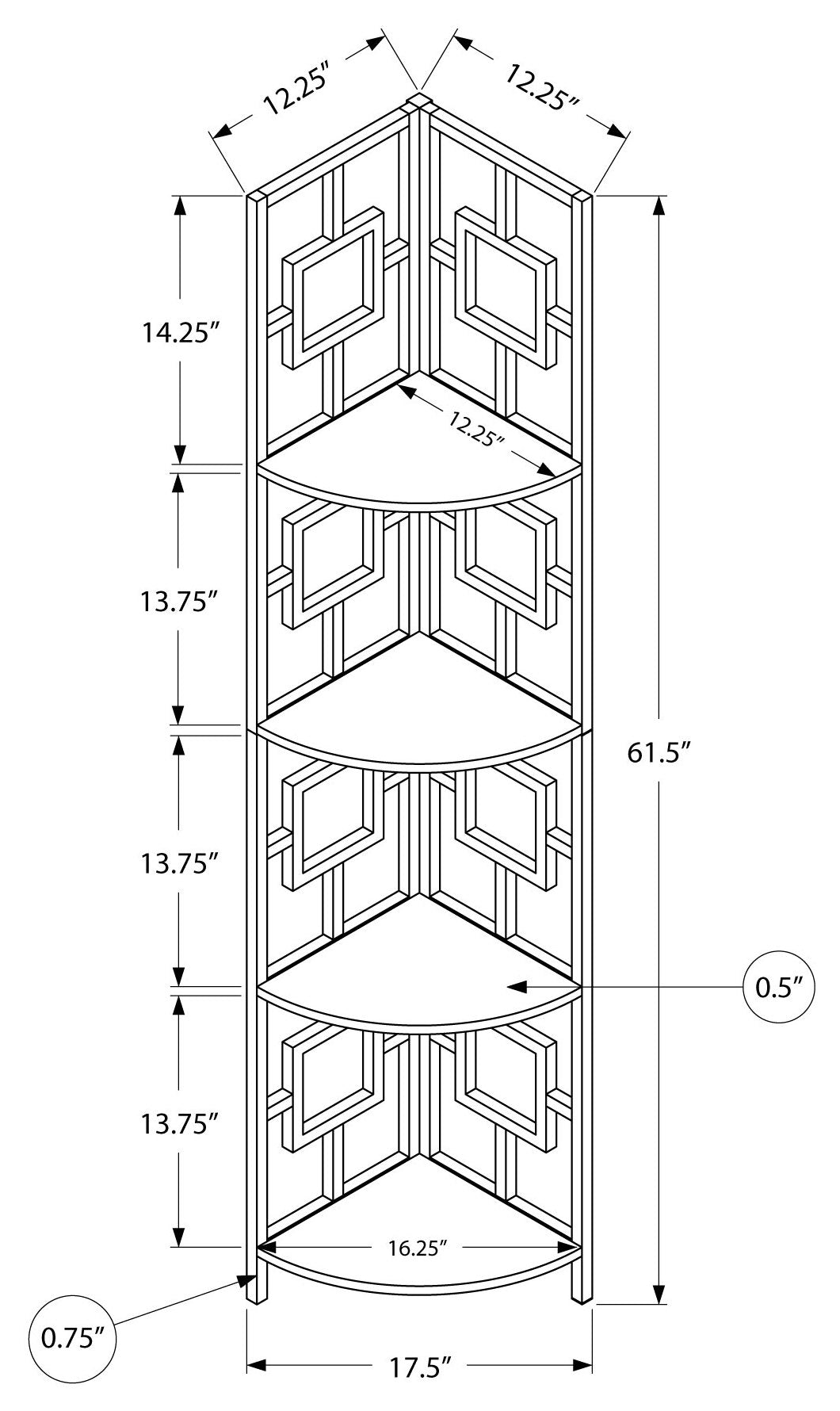 - Dimensions du produit : 18"L x 12"P x 62"H