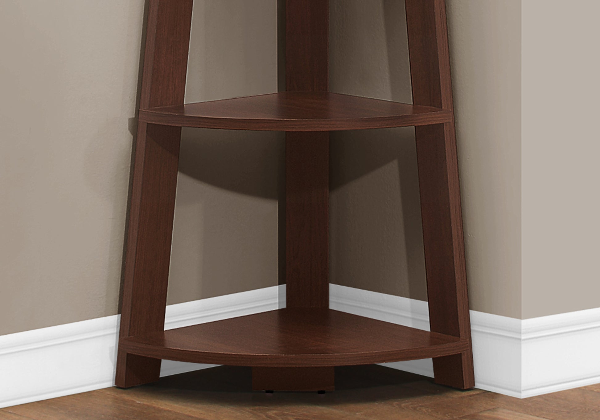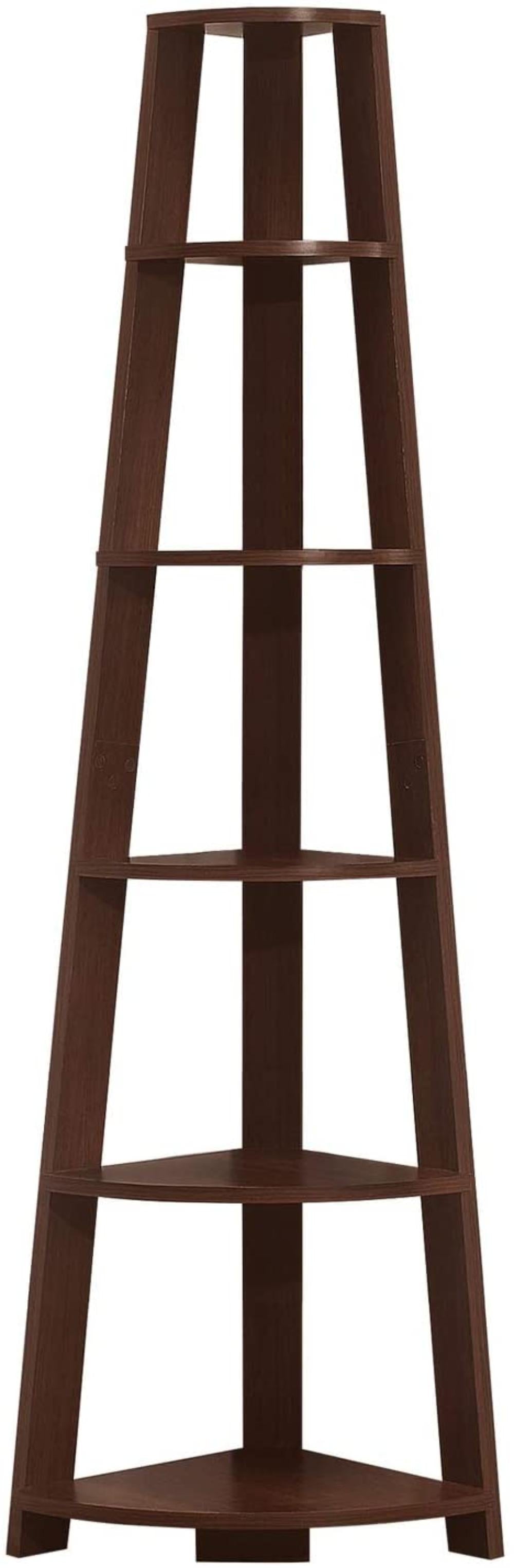 Installez facilement cette bibliothèque etagere et laissez-la faire son travail ! Regardez comme la bibliothèque s'intègre parfaitement dans un coin de votre salon, bureau ou chambre, vous permettant de mettre facilement en valeur des livres et tous types de décoration. Utilisez un endroit souvent difficile à travailler : le coin. Maximisez le stockage et l'affichage avec une pièce moderne qui vous permet d'utiliser tout l'espace disponible grâce à 5 étagères fixes de style plateau. Trois pieds de poutre robustes assurent l'intégrité structurelle de cette étagère d'échelle d'angle dans une texture d'aspect bois fini cerisier. Le matériel anti-basculement est inclus pour plus de stabilité.