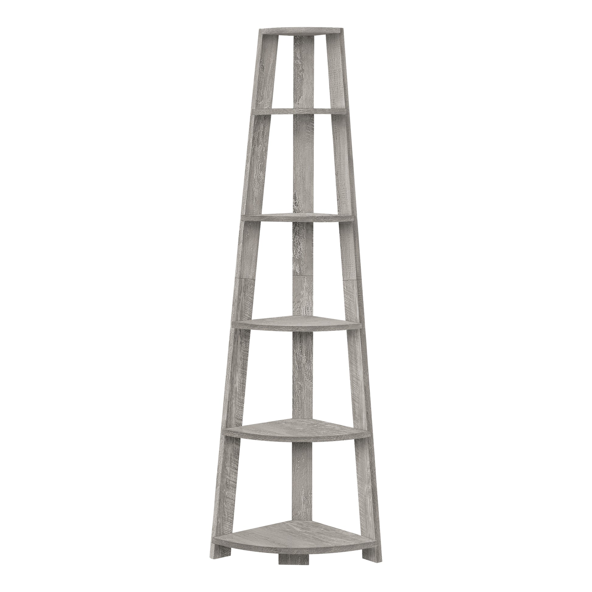 Installez facilement cette bibliothèque etagere et laissez-la faire son travail ! Regardez comme la bibliothèque s'intègre parfaitement dans un coin de votre salon, bureau ou chambre, vous permettant de mettre facilement en valeur des livres et tous types de décoration. Utilisez un endroit souvent difficile à travailler : le coin. Maximisez le stockage et l'affichage avec une pièce moderne qui vous aidera à utiliser tout l'espace disponible grâce à 5 étagères fixes de style plateau. Trois pieds de poutre robustes assurent l'intégrité structurelle de cette étagère d'échelle d'angle à la texture de bois gris industriel. Le matériel anti-basculement est inclus pour plus de stabilité.