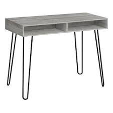 Apportez un style du milieu du siècle à votre espace de travail avec ce bureau d'ordinateur avec rangement. Ce bureau présente une finition stratifiée d'aspect bois gris associée à des pieds en épingle à cheveux en métal noir contrastants pour un style élégant et rétro. Le design minimaliste fait de ce bureau un complément parfait à votre dortoir ou petit appartement. Le bureau est suffisamment grand pour que vous puissiez terminer vos devoirs ou parcourir les réseaux sociaux sur votre ordinateur portable. Les 2 compartiments ouverts vous permettent de ranger des cahiers, des ustensiles d'écriture, en gardant votre espace de travail sans encombrement.