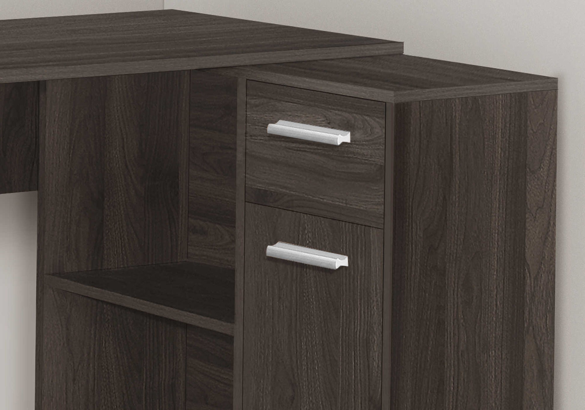 - Bureau d'ordinateur en forme de L avec rangement au fini aspect bois de chêne brun