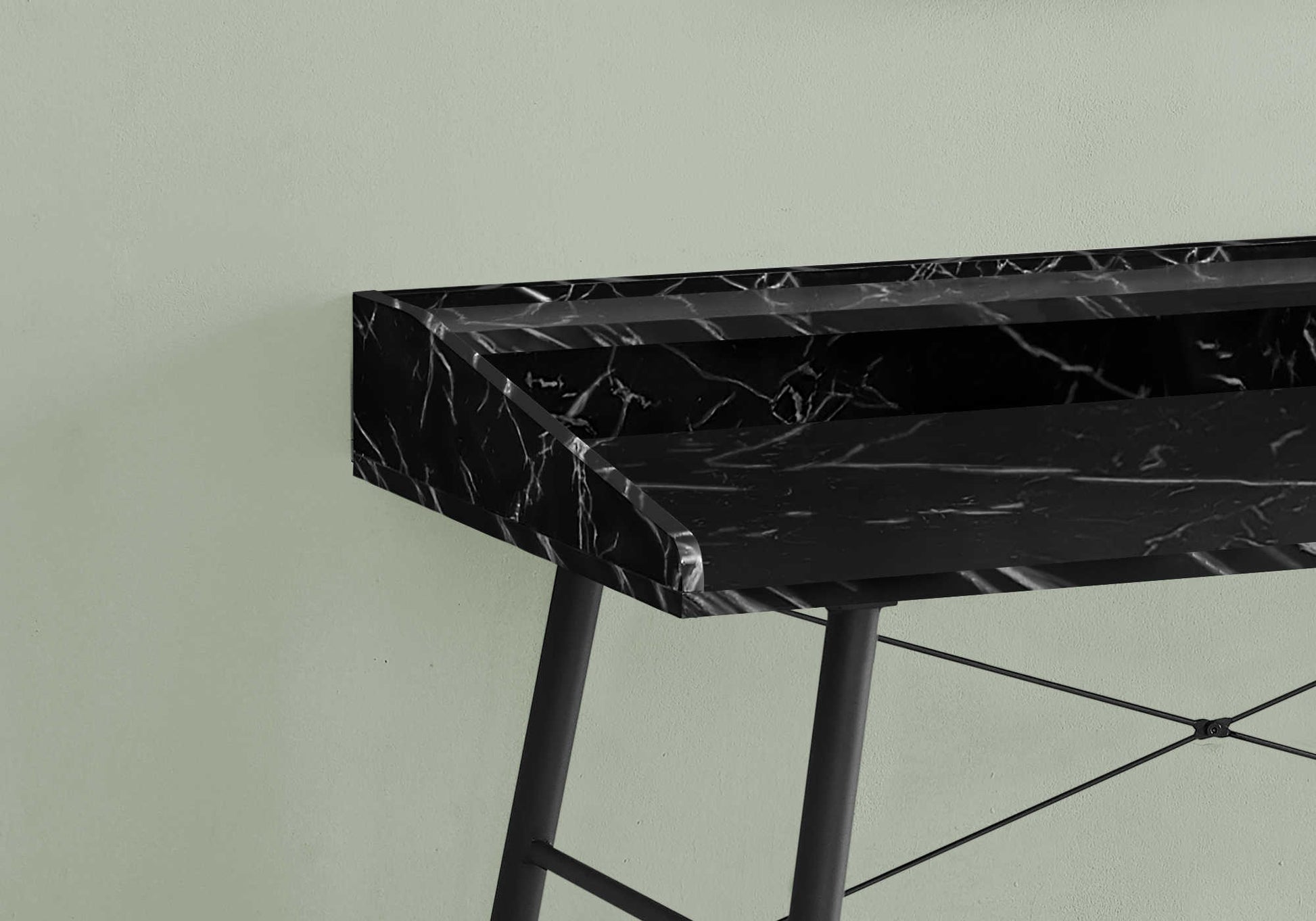 BUREAU D'ORDINATEUR - 48"L / ASPECT MARBRE NOIR / MÉTAL NOIR ( Meuble Mtl )
