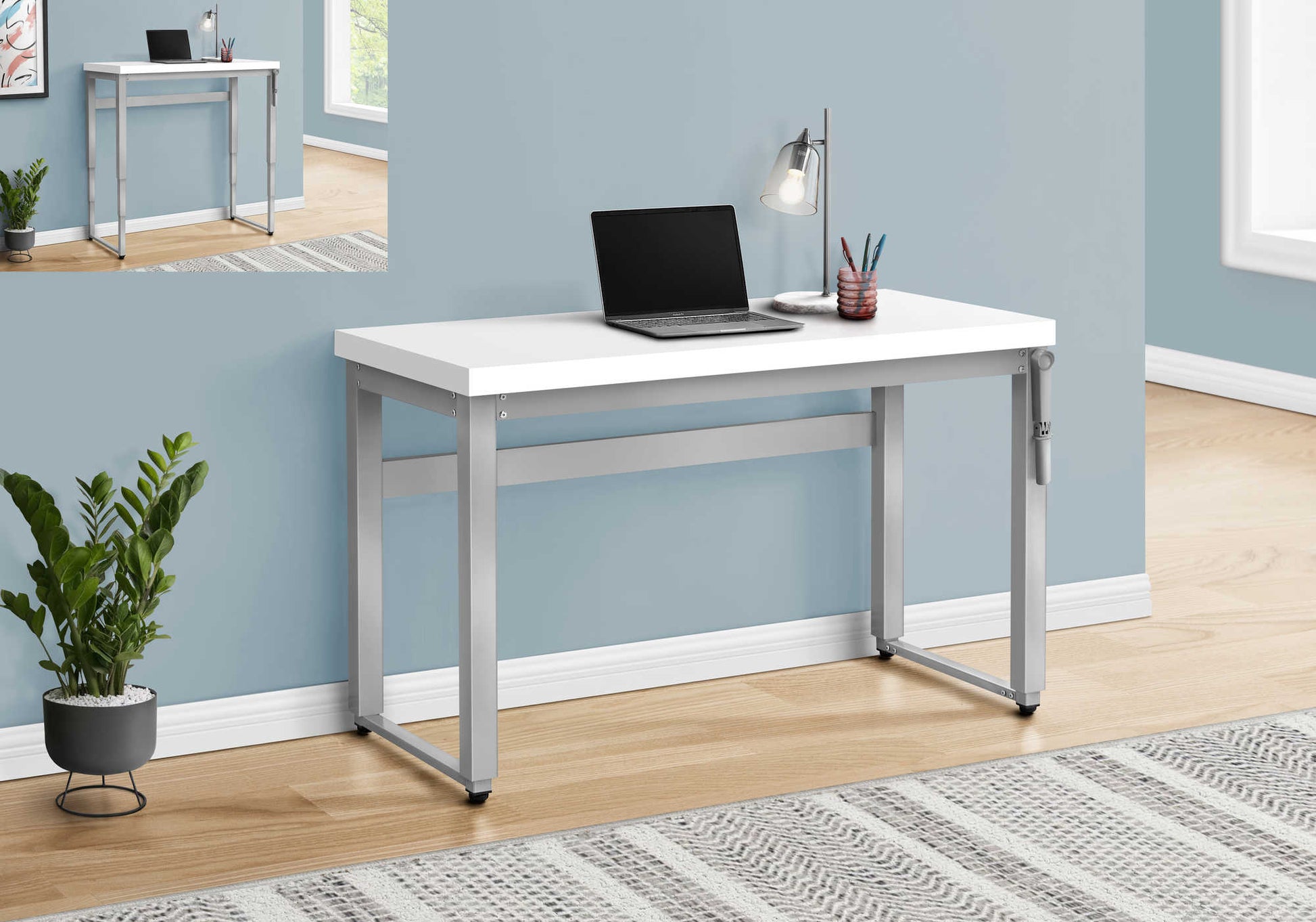 BUREAU D'ORDINATEUR - 48"L / BLANC / HAUTEUR AJUSTABLE/ METAL ARGENT ( Meuble Mtl )