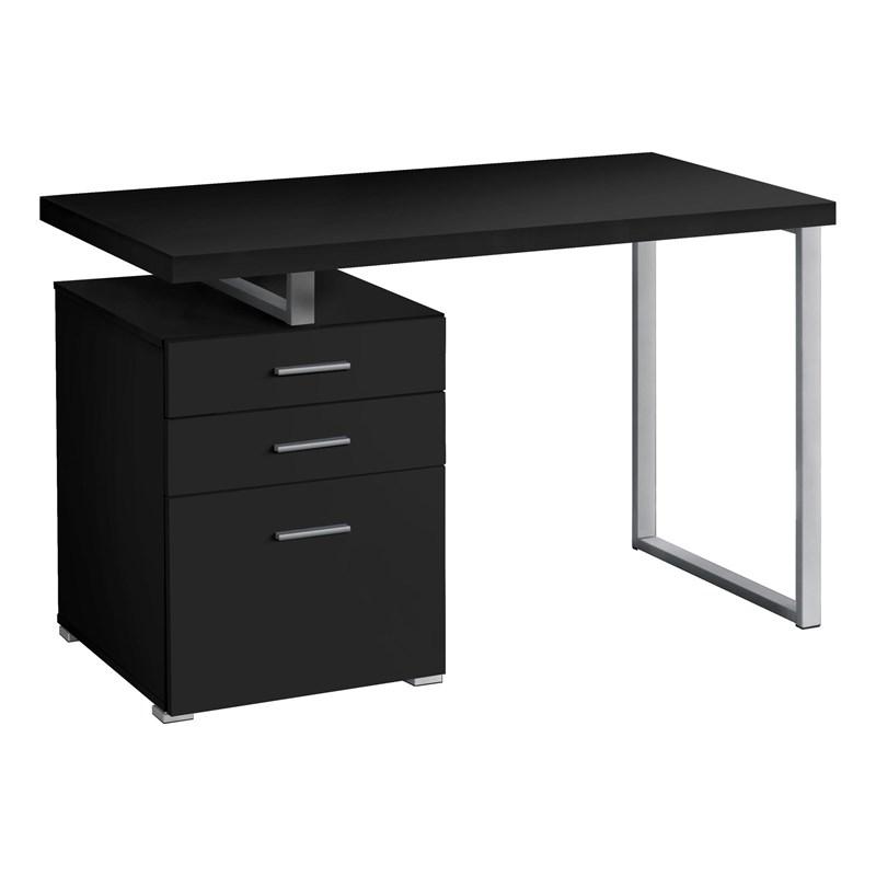 BUREAU D'ORDINATEUR - 48"L / NOIR / METAL ARGENT / FACE G/D