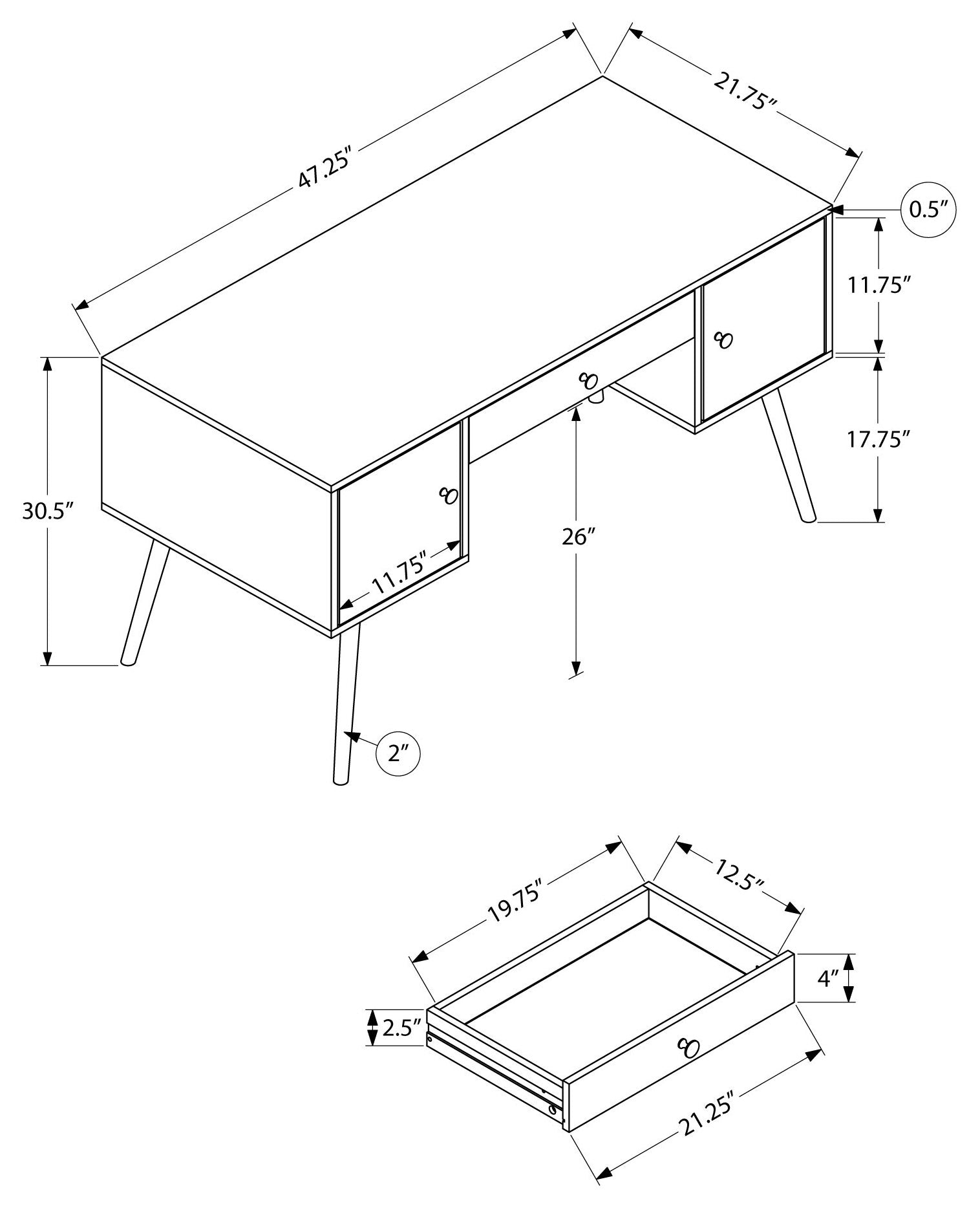 - 1 grand tiroir de rangement et 2 armoires permettant de l'espace pour ranger des articles et garder le bureau sans encombrement