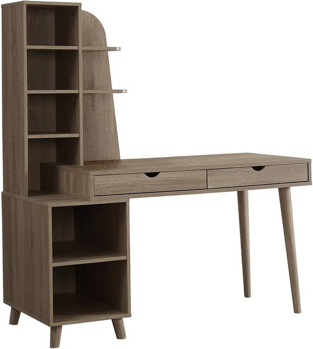 BUREAU D'ORDINATEUR - 55"L / TAUPE FONCÉ AVEC BIBLIOTHÈQUE