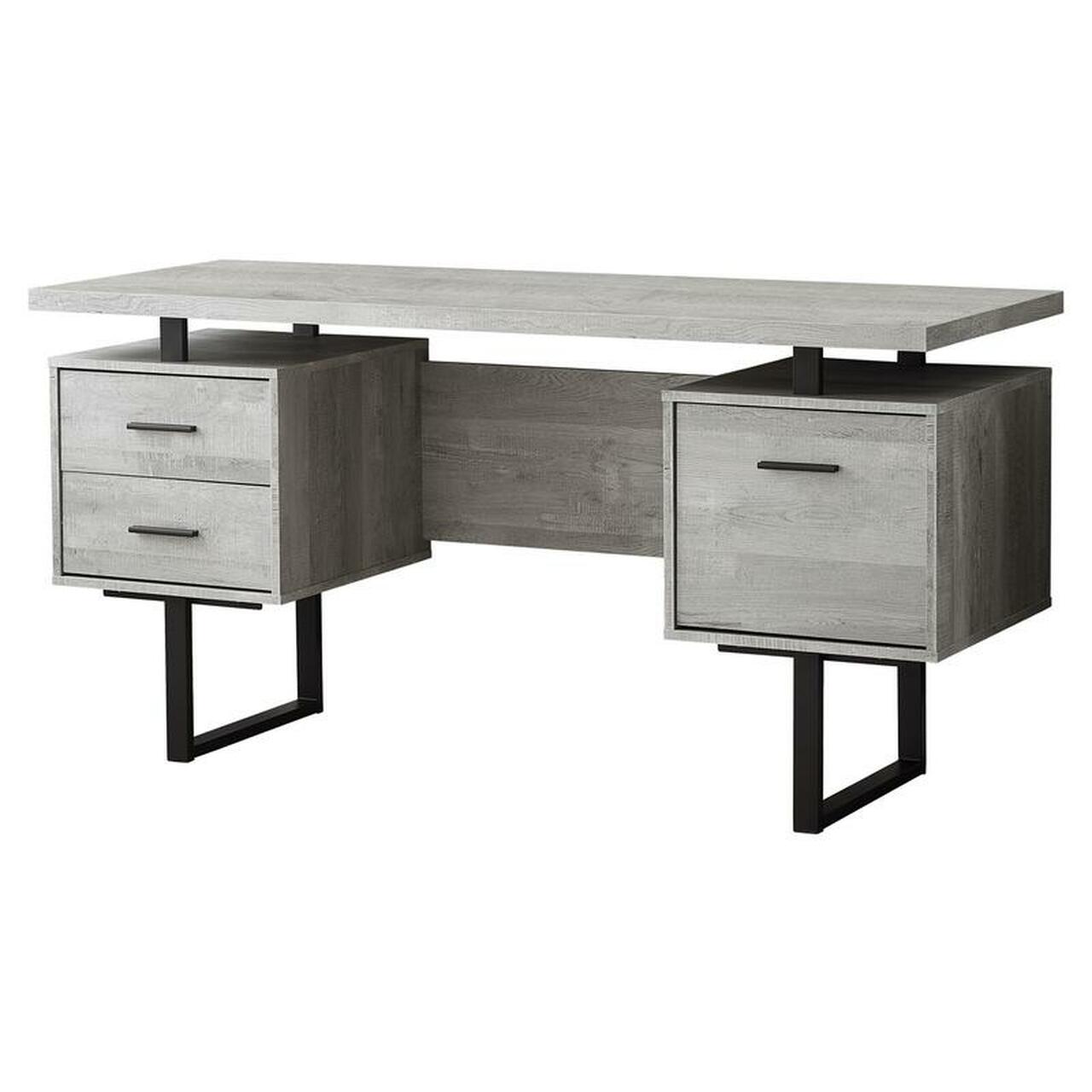- Bureau d'ordinateur avec 3 tiroirs de rangement et un grand bureau flottant à panneaux épais dans une finition aspect bois recyclé gris