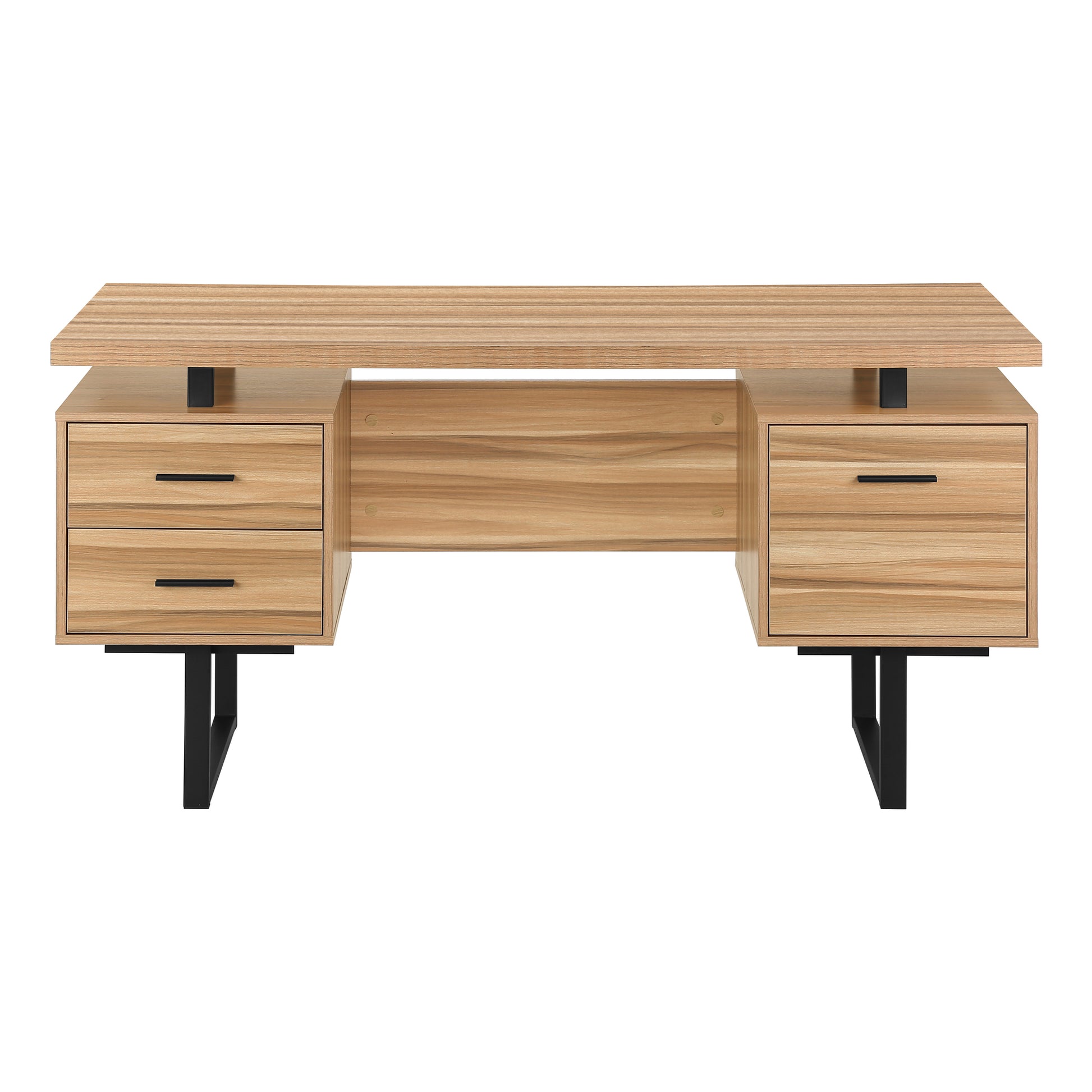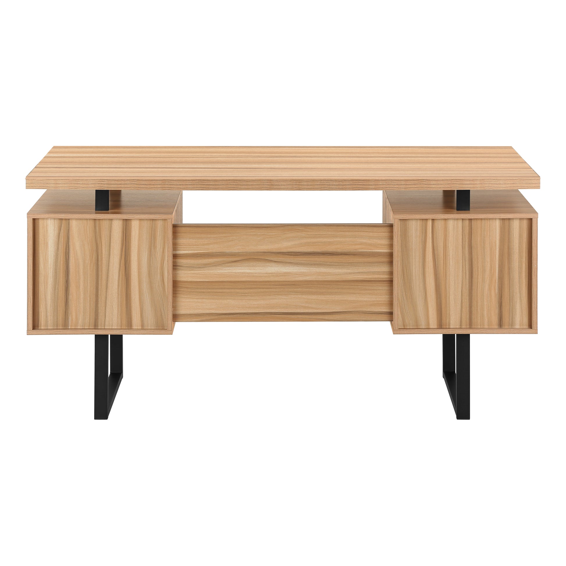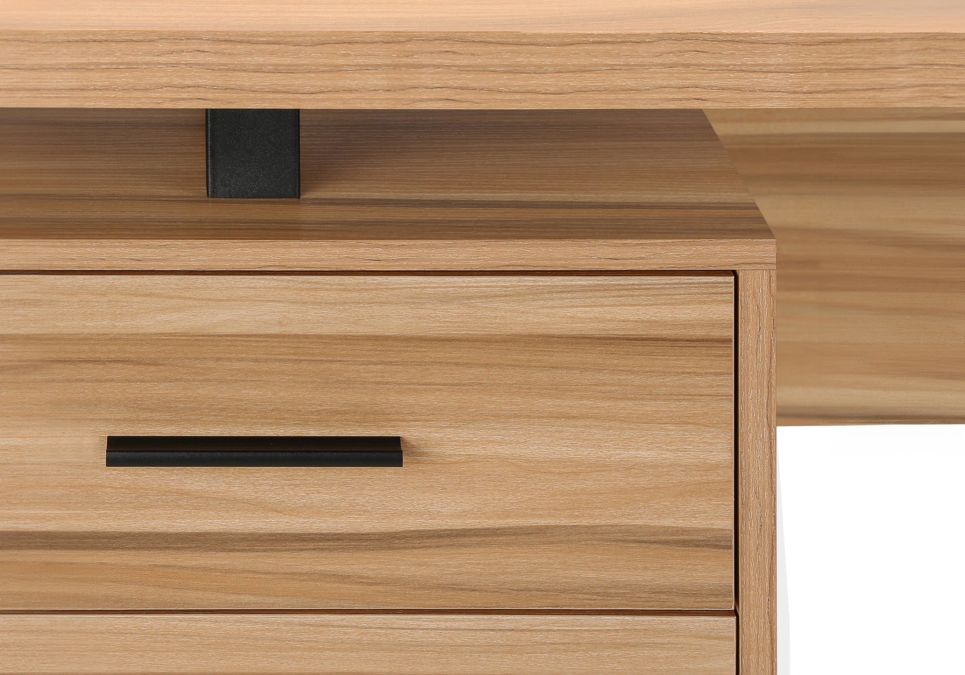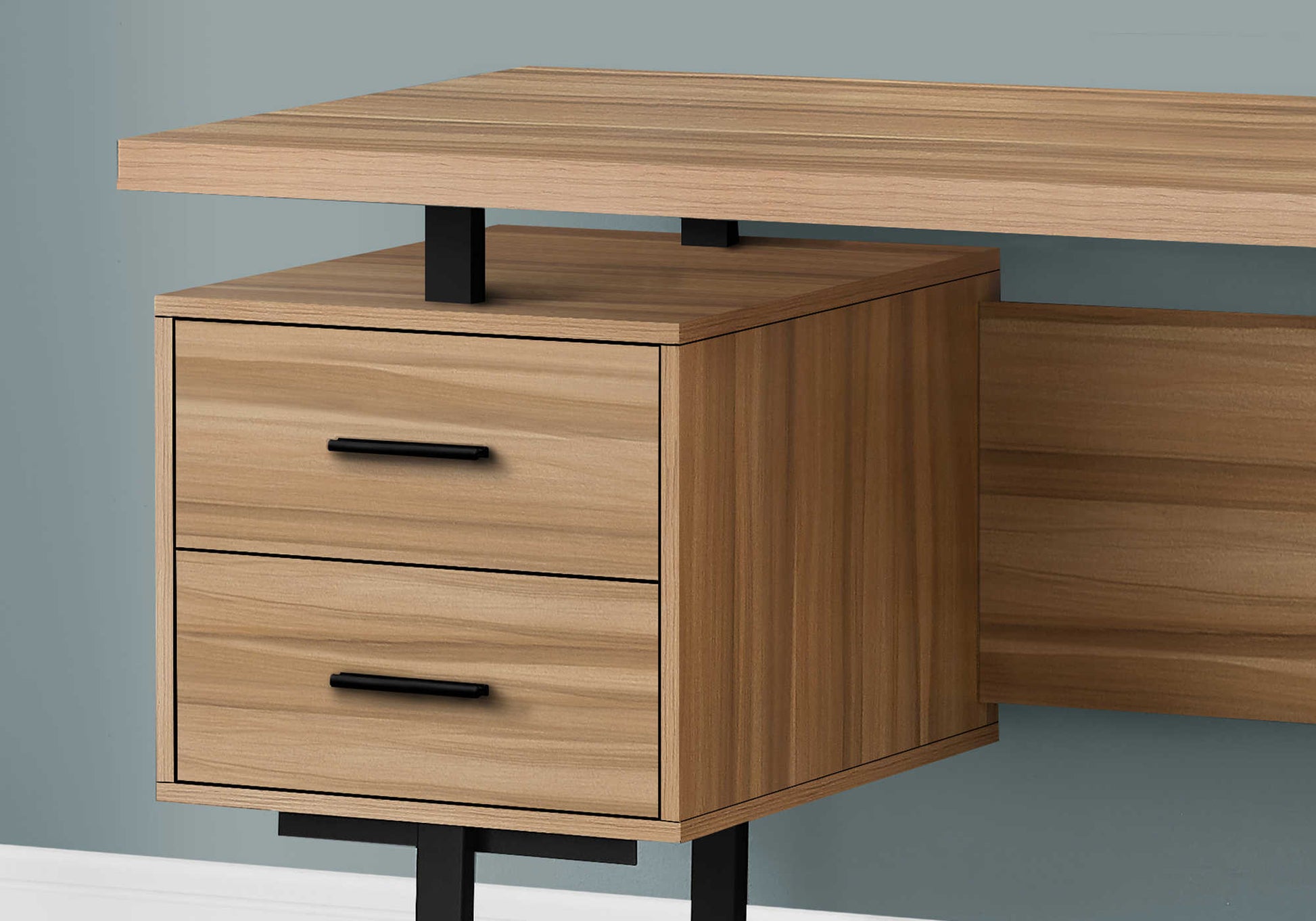 - Bureau d'ordinateur avec 3 tiroirs de rangement et un grand bureau flottant à panneau épais dans une finition légère d'aspect bois récupéré