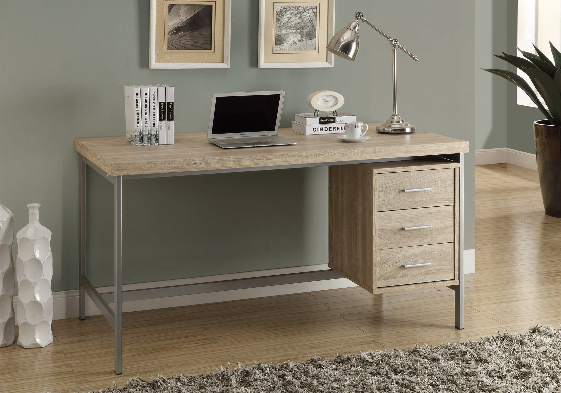 BUREAU D'ORDINATEUR - 60"L / NATUREL AVEC METAL ARGENT