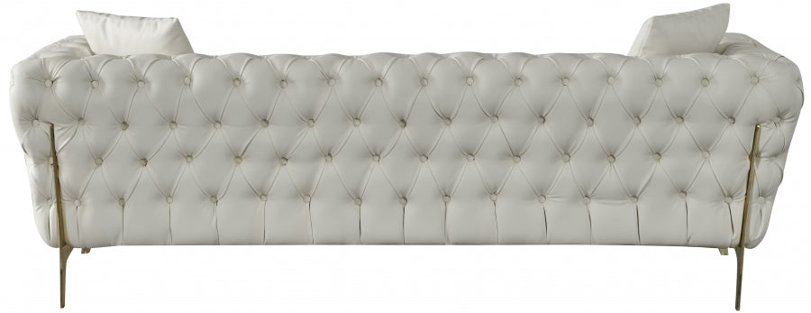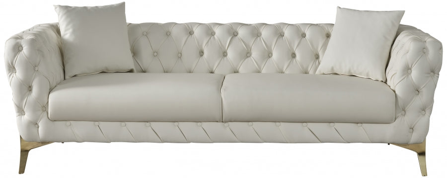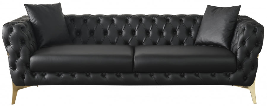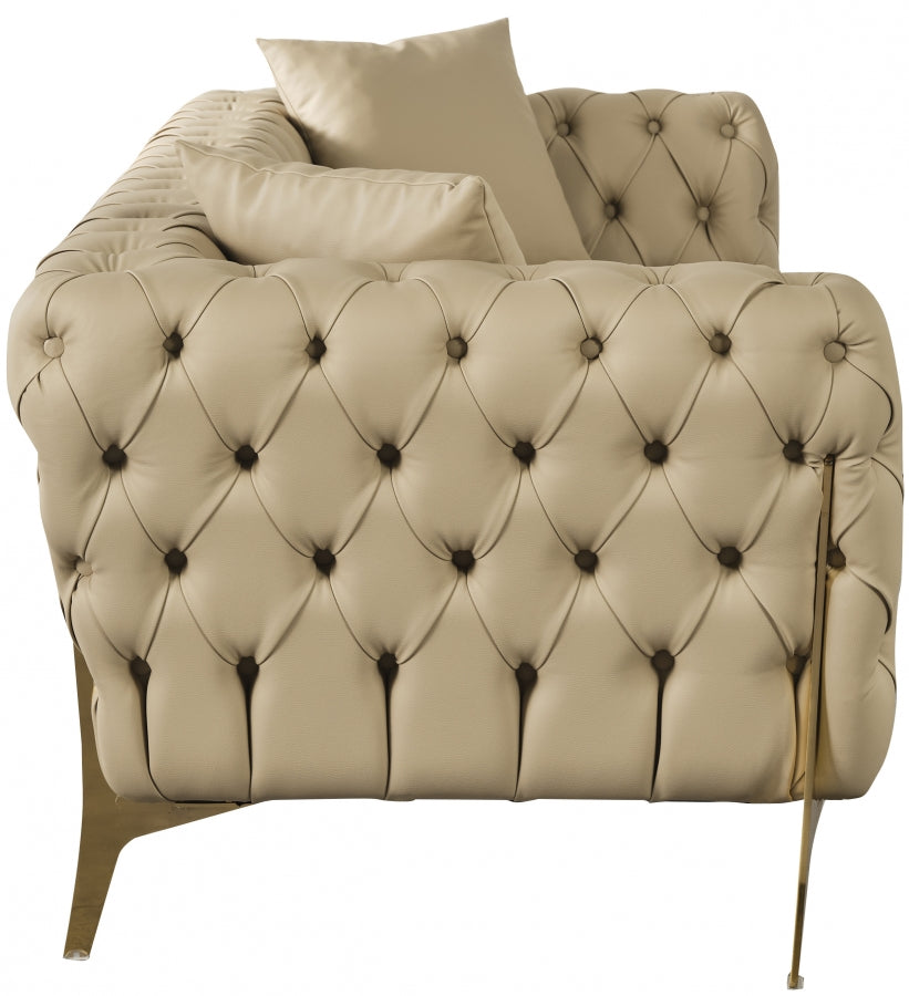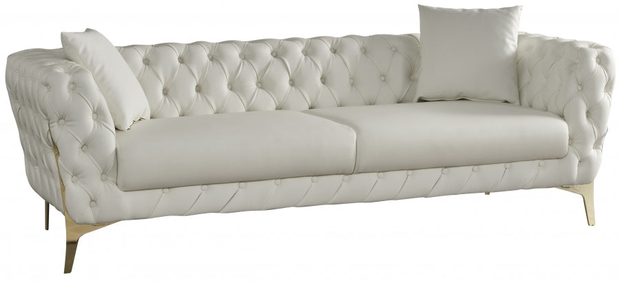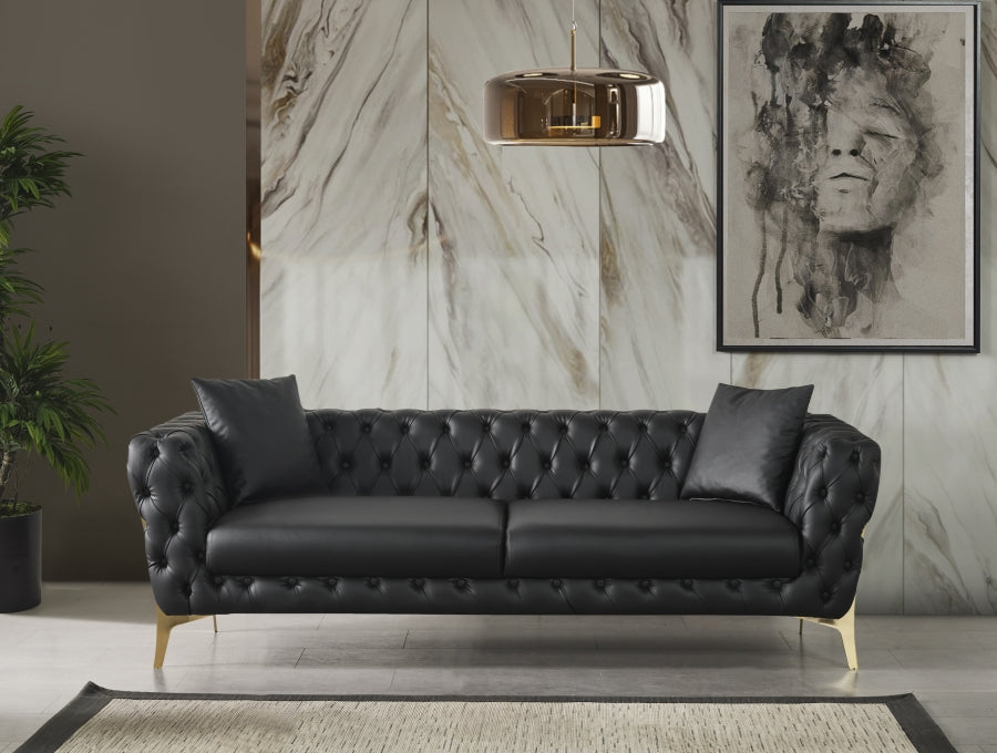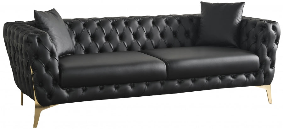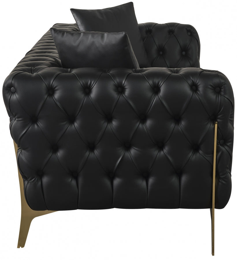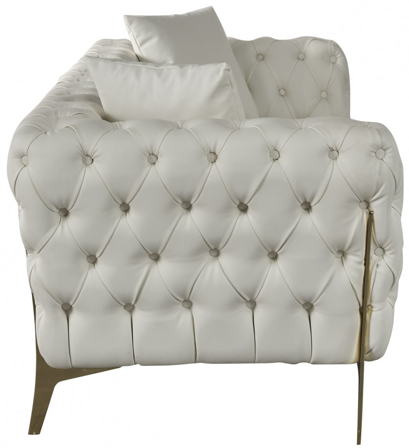 Ajoutez du style à votre maison avec ce canapé en similicuir Aurora. Doté d'un similicuir riche et doux et d'un capitonnage profond, ce canapé est à la fois confortable et élégant. Des pieds en acier inoxydable doré et une construction en bois offrent un soutien suffisant pour tous ceux qui souhaitent s'asseoir. Les oreillers inclus offrent un confort supplémentaire lorsque vous souhaitez vous détendre et vous détendre. Le cadre large du canapé en similicuir Aurora le rend parfait pour tout espace ouvert.