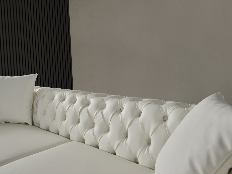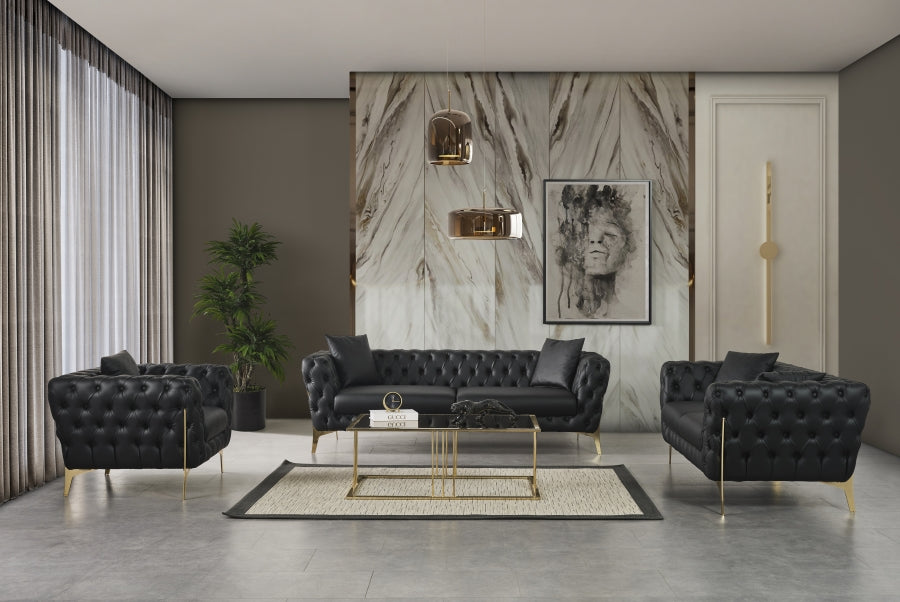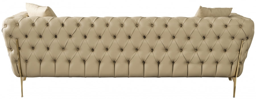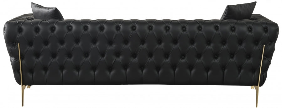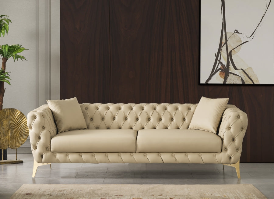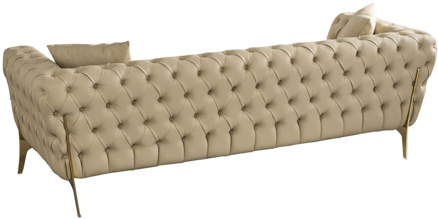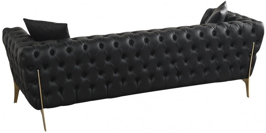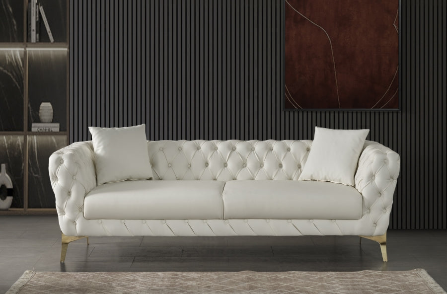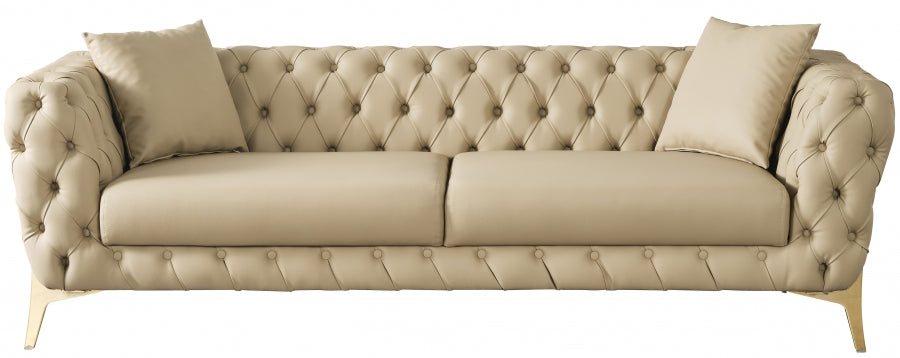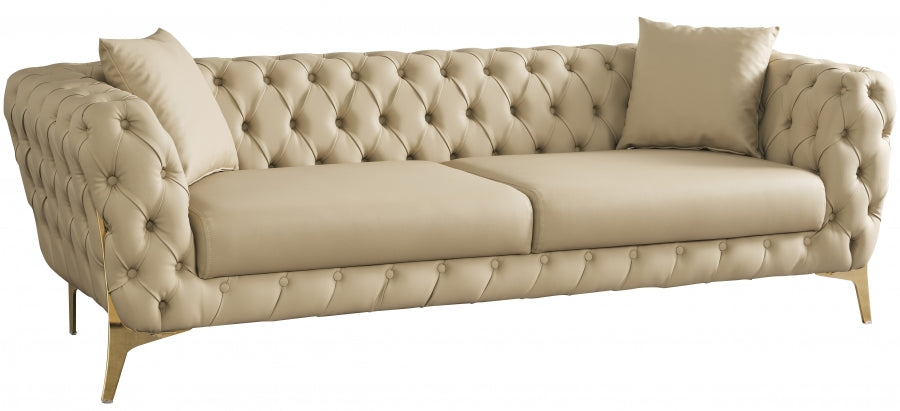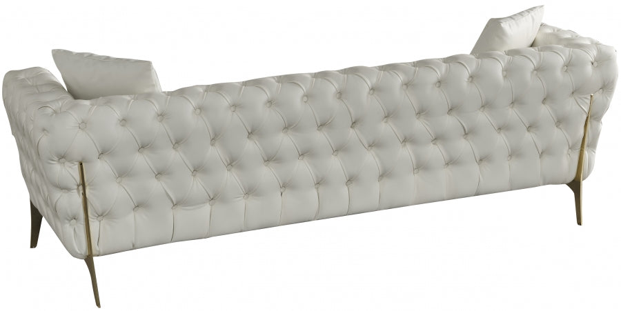 Ajoutez du style à votre maison avec ce canapé en similicuir Aurora. Doté d'un similicuir riche et doux et d'un capitonnage profond, ce canapé est à la fois confortable et élégant. Des pieds en acier inoxydable doré et une construction en bois offrent un soutien suffisant pour tous ceux qui souhaitent s'asseoir. Les oreillers inclus offrent un confort supplémentaire lorsque vous souhaitez vous détendre et vous détendre. Le cadre large du canapé en similicuir Aurora le rend parfait pour tout espace ouvert.