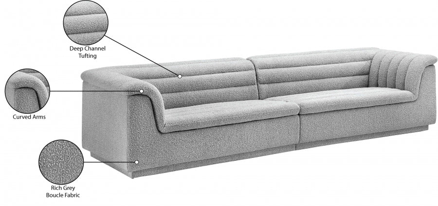 Donnez à votre pièce une réhabilitation bien méritée lorsque vous rapportez à la maison ce canapé modulaire en tissu boucle Cascade. Le design élégant et accrocheur présente un profil moderne avec des inclinaisons incurvées et un capitonnage horizontal profond, de sorte qu'il impressionne sous tous les angles. Recouvert d'un riche tissu bouclé, ce siège devient rapidement l'endroit préféré de tous pour se blottir avec un bon livre ou un appareil intelligent. Le rembourrage en mousse épaisse garantit une expérience confortable et près du corps pendant que vous regardez la télévision ou que vous vous étendez simplement.