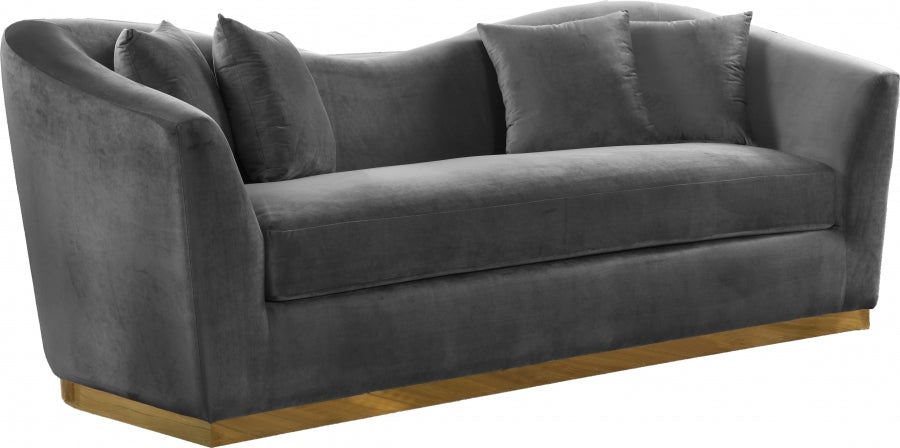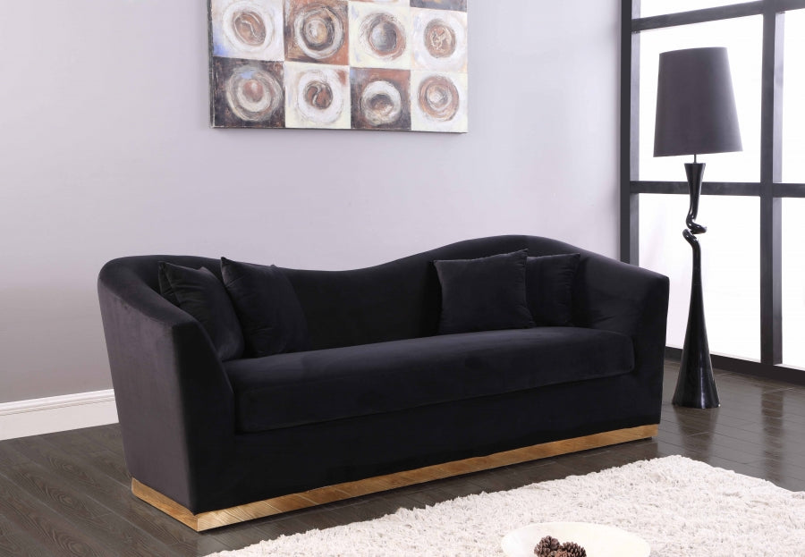 Faites du canapé en velours Arabella votre endroit préféré pour la sieste. Ce beau canapé est recouvert de velours pour une touche glamour et est rehaussé d'acier inoxydable doré autour de sa base pour une touche de modernité. Son dos incurvé lui donne un aspect gracieux dans votre salon ou votre tanière, et il est accompagné de coussins assortis qui vous invitent à vous asseoir et à vous reposer (ou à faire la sieste) pendant un moment.