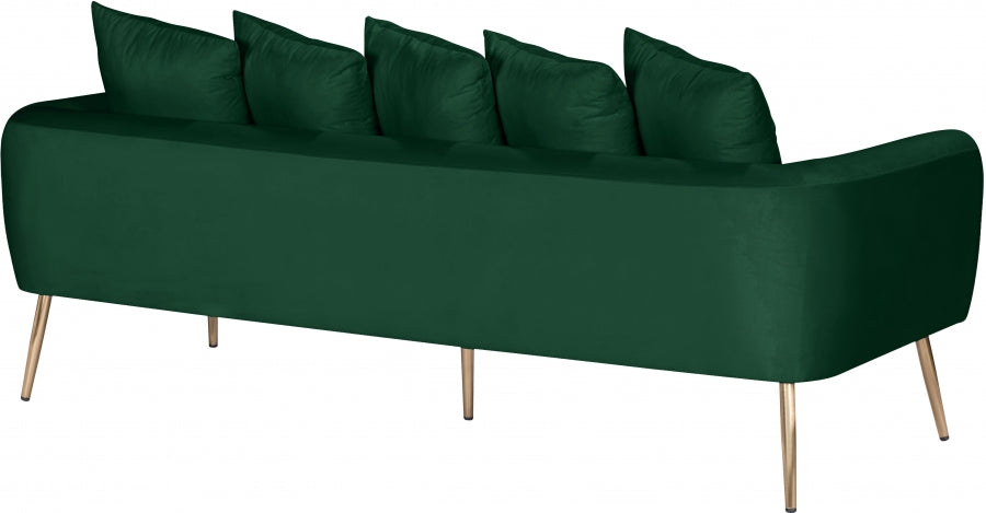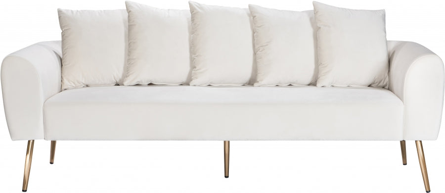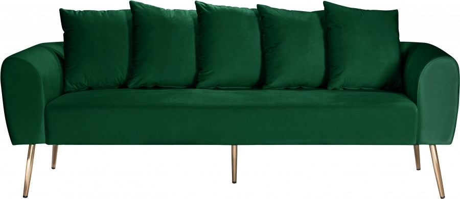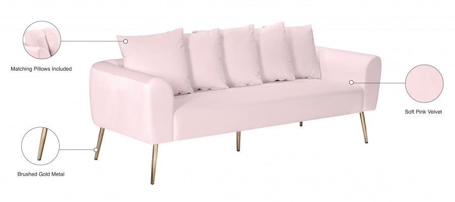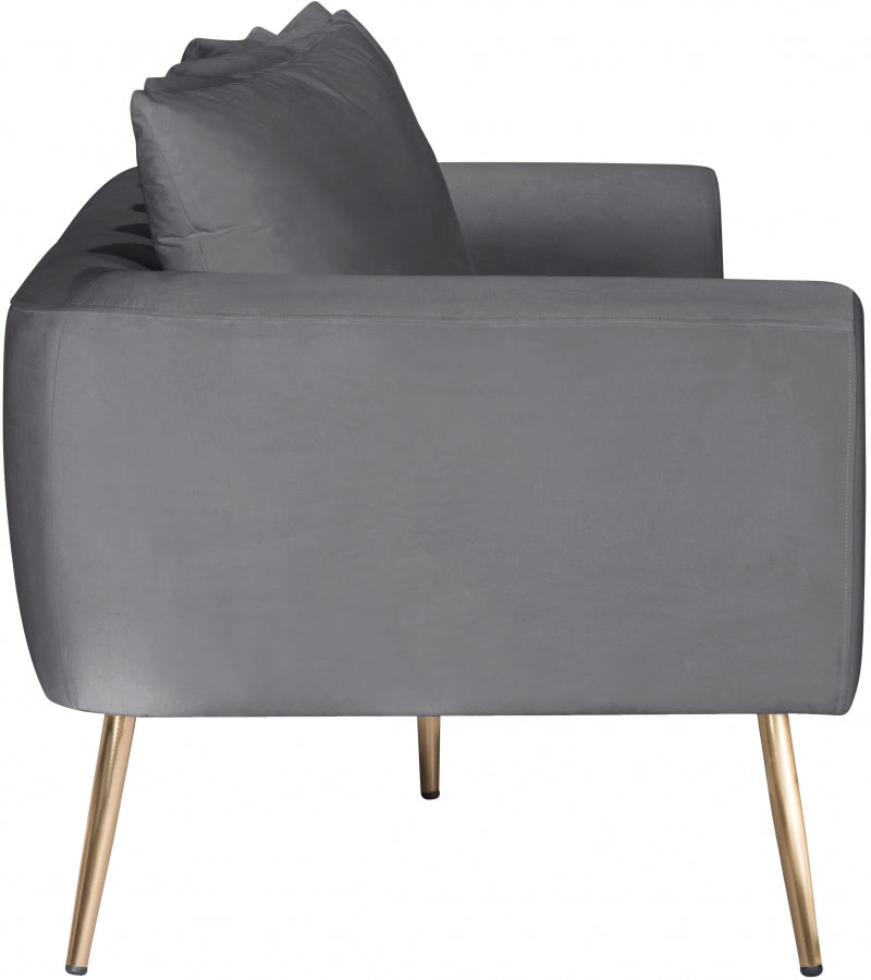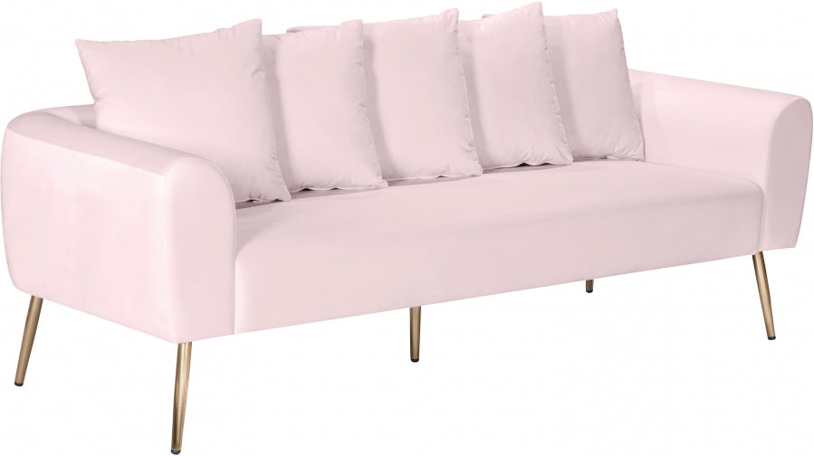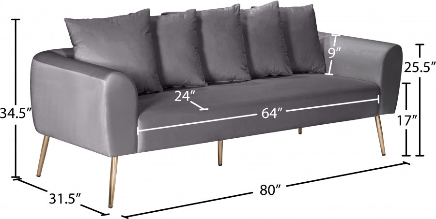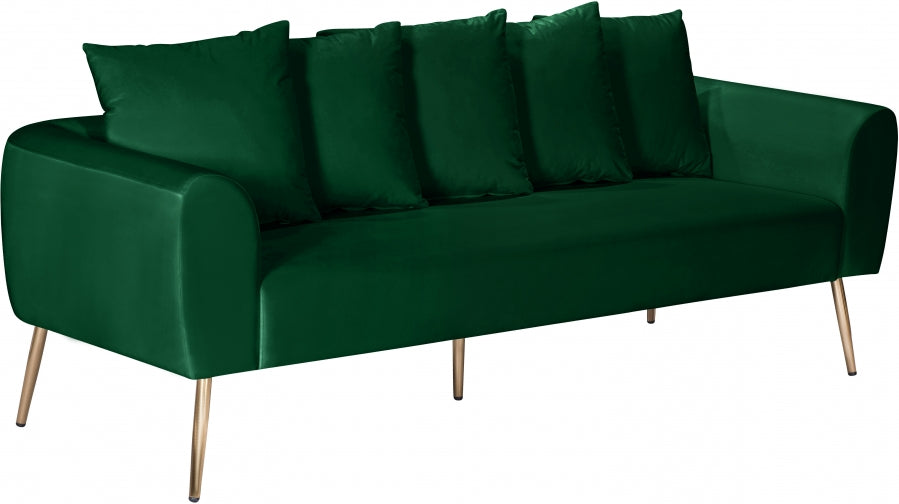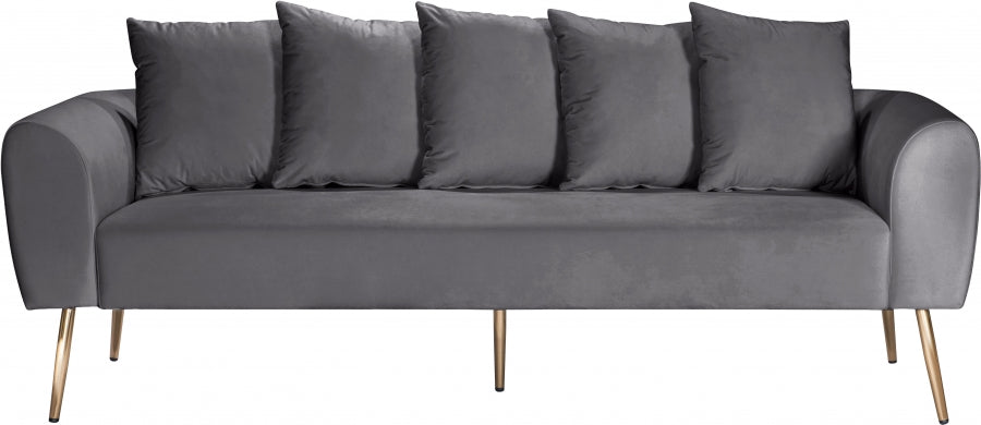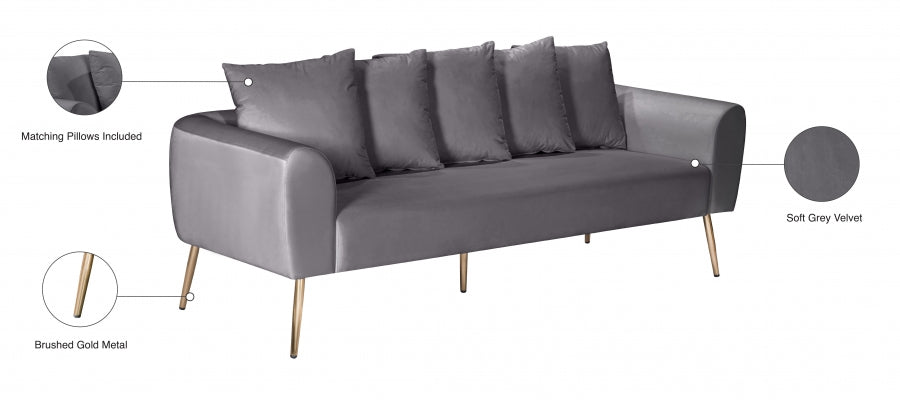 Asseyez-vous dans ce canapé en velours Quinn et vous réfléchissez peut-être à deux fois avant de vous relever. Ce canapé super confortable est doté d'un revêtement en velours doux qui recouvre ses effacements, son siège et son dossier abondamment rembourrés, garantissant qu'il est invariablement le meilleur siège de la maison. Les deux coussins assortis ajoutent à son ambiance accueillante, tandis que les pieds en acier doré rendent le design particulièrement moderne.
