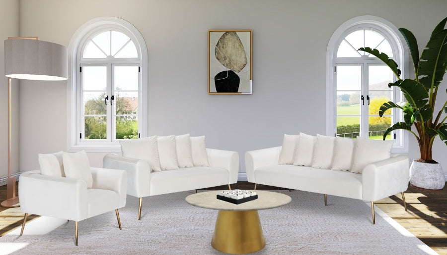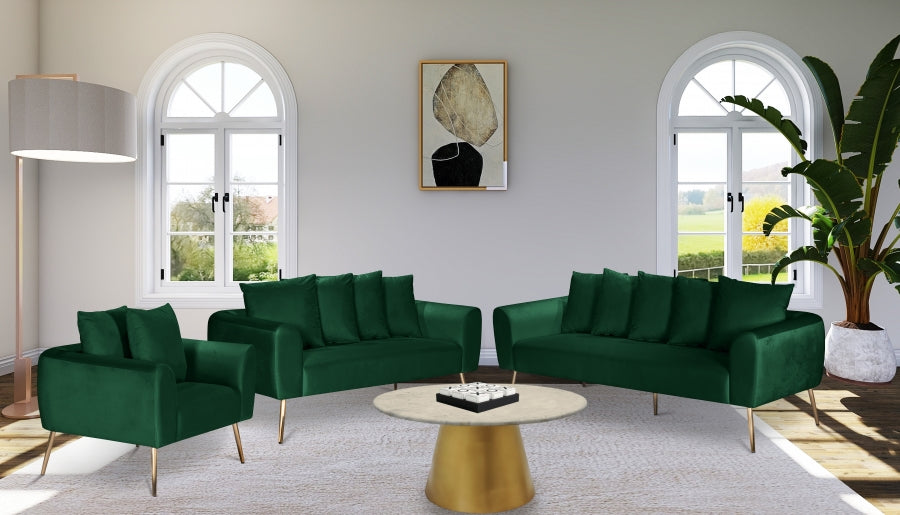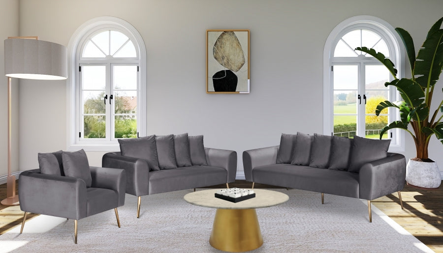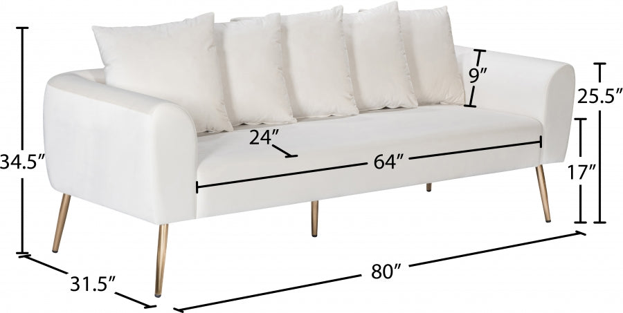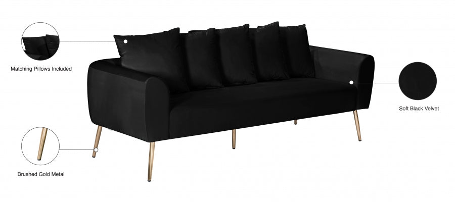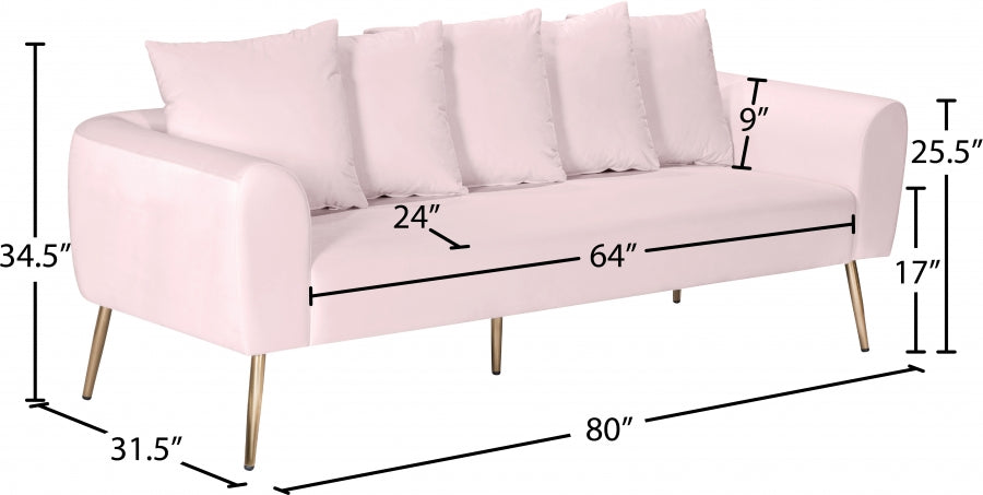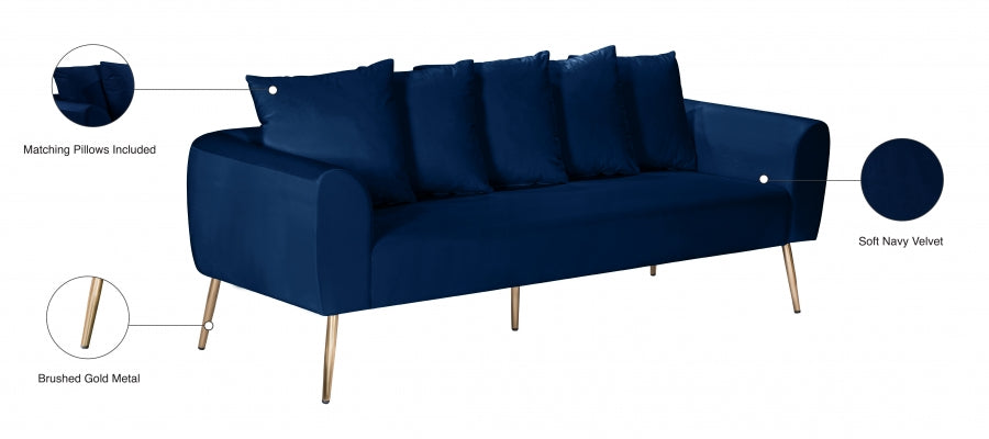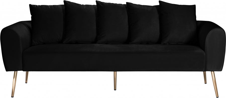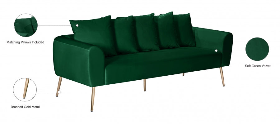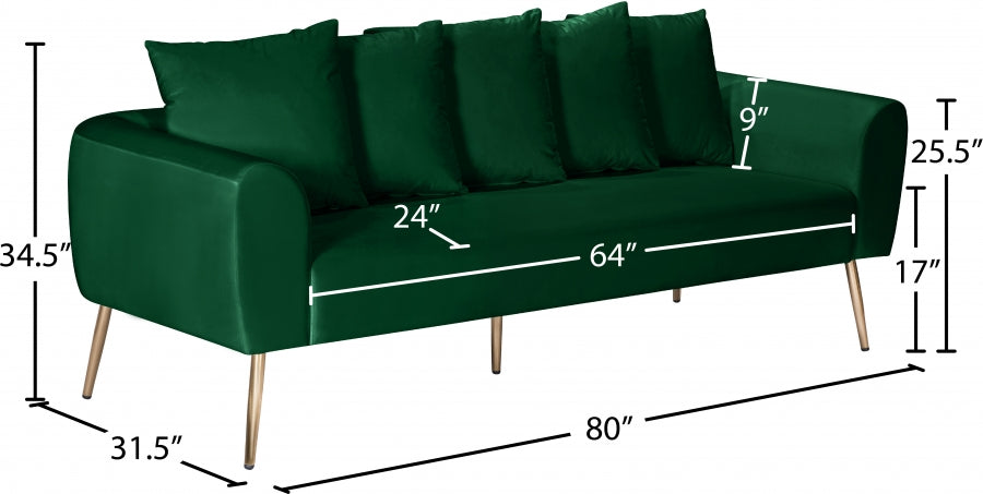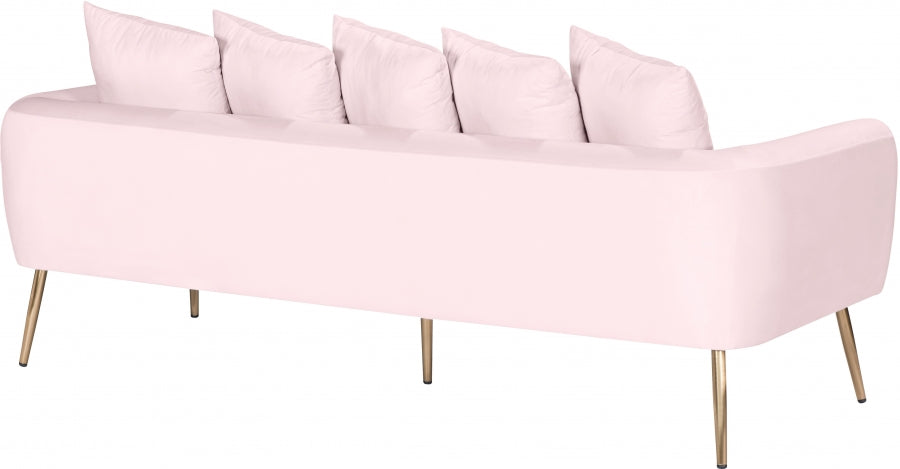Asseyez-vous dans ce canapé en velours Quinn et vous réfléchissez peut-être à deux fois avant de vous relever. Ce canapé super confortable est doté d'un revêtement en velours doux qui recouvre ses effacements, son siège et son dossier abondamment rembourrés, garantissant qu'il est invariablement le meilleur siège de la maison. Les deux coussins assortis ajoutent à son ambiance accueillante, tandis que les pieds en acier doré rendent le design particulièrement moderne.