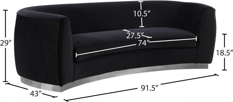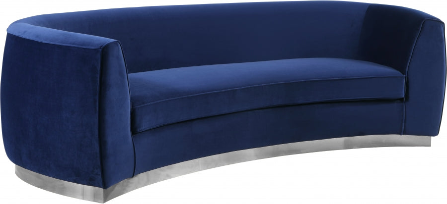 La collection Julian de Meridian Furniture. Dispose d'un velours magnifiquement rembourré avec une base en acier inoxydable chromé brillant. Utilisant des velours de la plus haute qualité, cet ensemble est sûr d'étourdir vos invités.