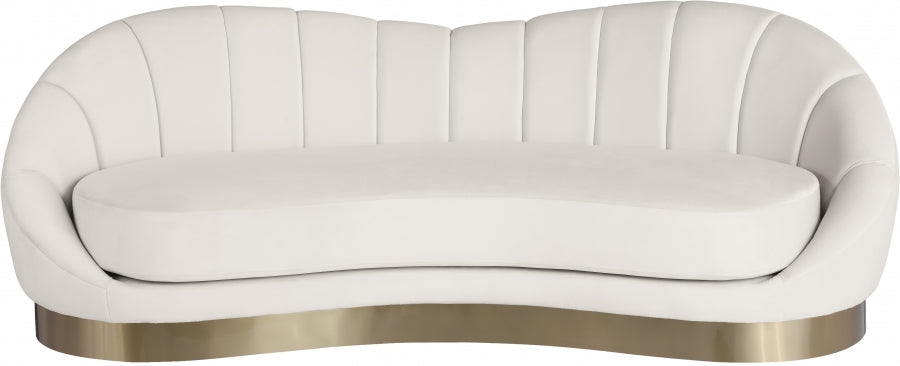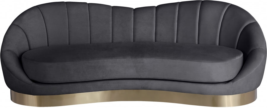 Détendez-vous et reposez-vous lorsque vous êtes assis sur ce canapé en velours Shelly dotée d'un revêtement en velours doux. Cette jolie pièce est juste ce qu'il faut pour injecteur du drame dans votre espace, qu'elle soit utilisée seule ou en combinaison avec d'autres articles de la collection Shelly. La forme unique de la coque attire immédiatement l'attention et la base en acier inoxydable doré brossé cimente la base avec un panache contemporain.