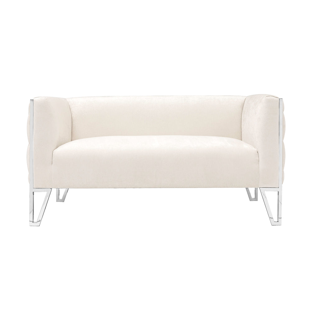 - Assise en tissu polyester ivoire avec capitonnage de boutons sur le côté des accoudoirs du canapé