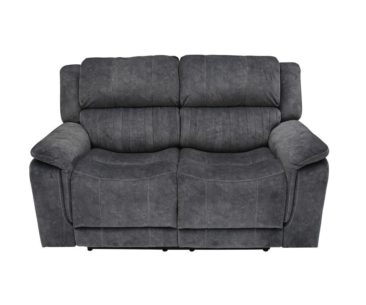- Causeuse 2 places avec fauteuil inclinable à relevage électrique de couleur grise.