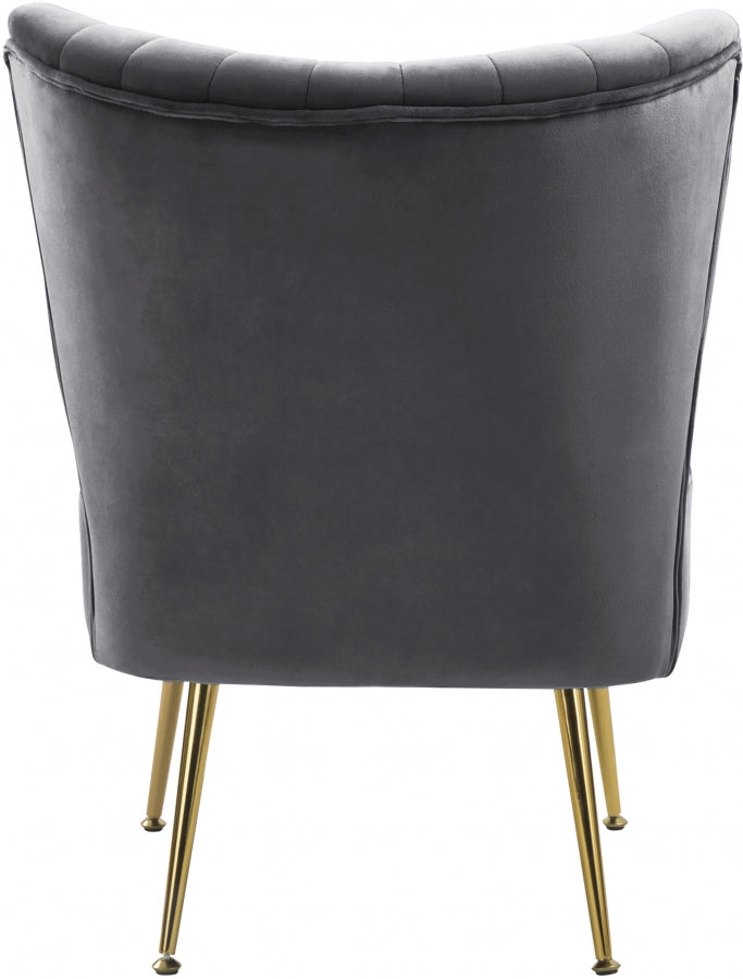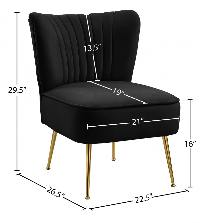 Apportez à la maison cette chaise d'appoint en velours Tess pour leur donner de quoi parler. Cette belle chaise fera parler de lui avec son revêtement en velours bleu élégant et confortable contre la peau. Le capitonnage à canaux profonds le long du dossier de la chaise ajoute à son look haut de gamme, et les pieds en acier doré garantissent que la chaise s'adapte bien à un décor contemporain.