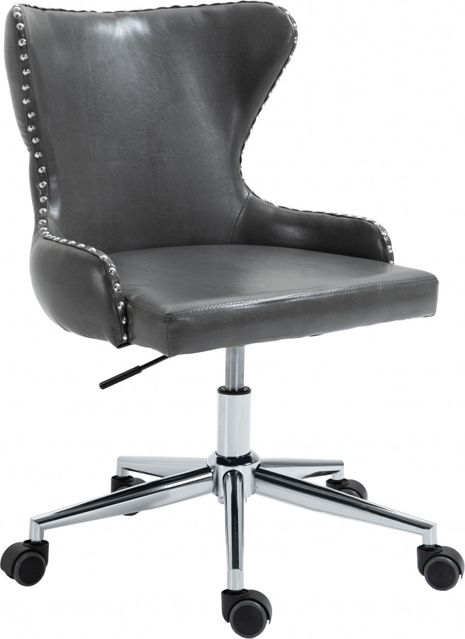 Asseyez-vous et détendez-vous dans cette chaise de bureau en similicuir Hendrix. Son similicuir doux semble si réel que personne d'autre que vous ne saura que ce n'est pas le cas. Une base chromée riche et une quincaillerie de garniture de tête de clou assortie ajoutent une touche d'élégance à cette chaise confortable. Sa fonction pivotante vous permet de vous tourner facilement sur votre poste de travail pour différentes tâches, et la hauteur du siège est réglable, ce qui vous permet de trouver rapidement la position la meilleure et la plus confortable.