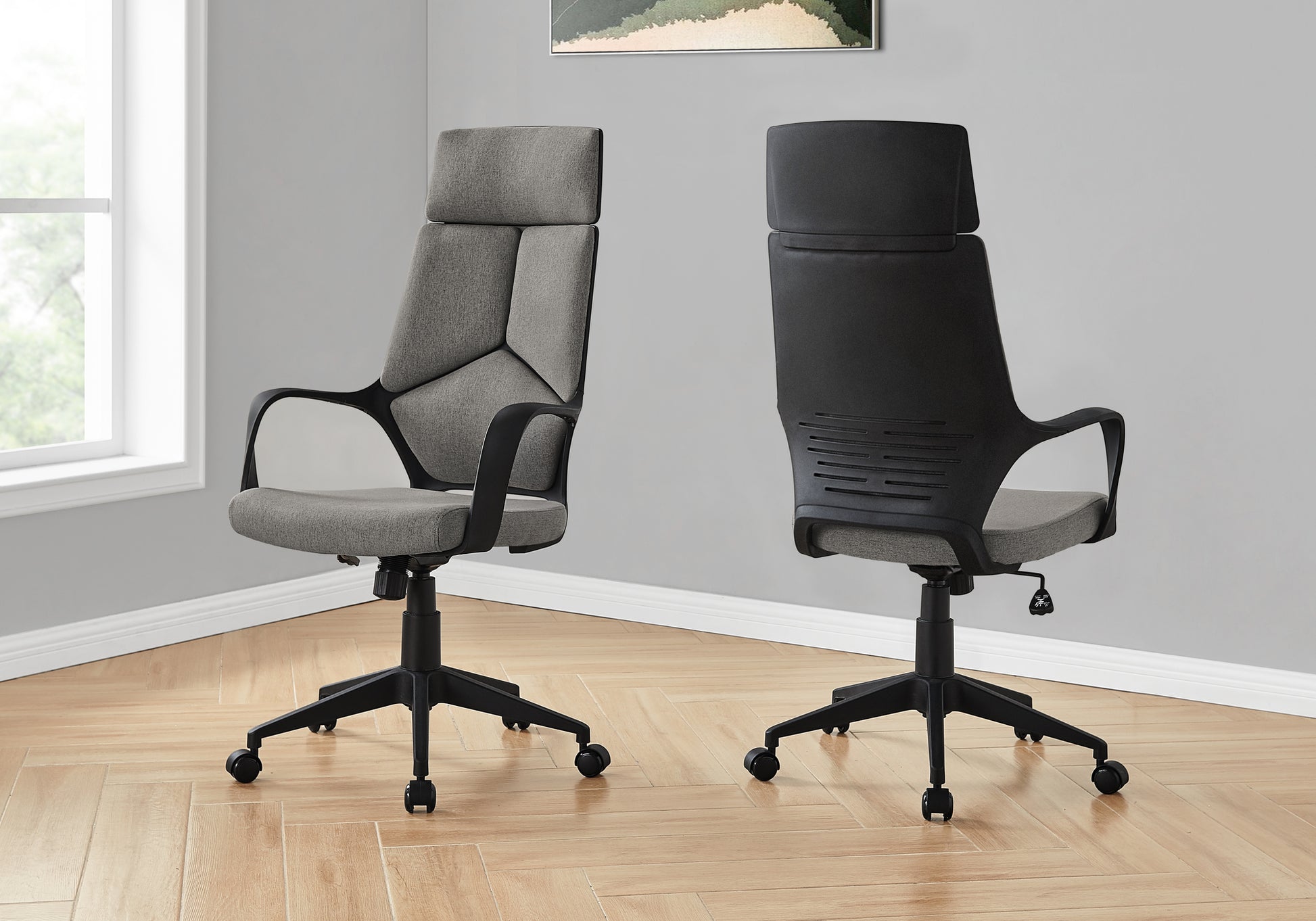 - Chaise de bureau de direction à dossier haut avec incapacités fixes en tissu polyester noir et doux gris foncé