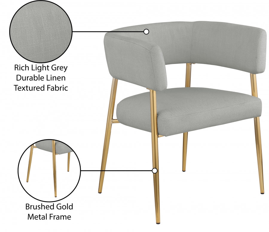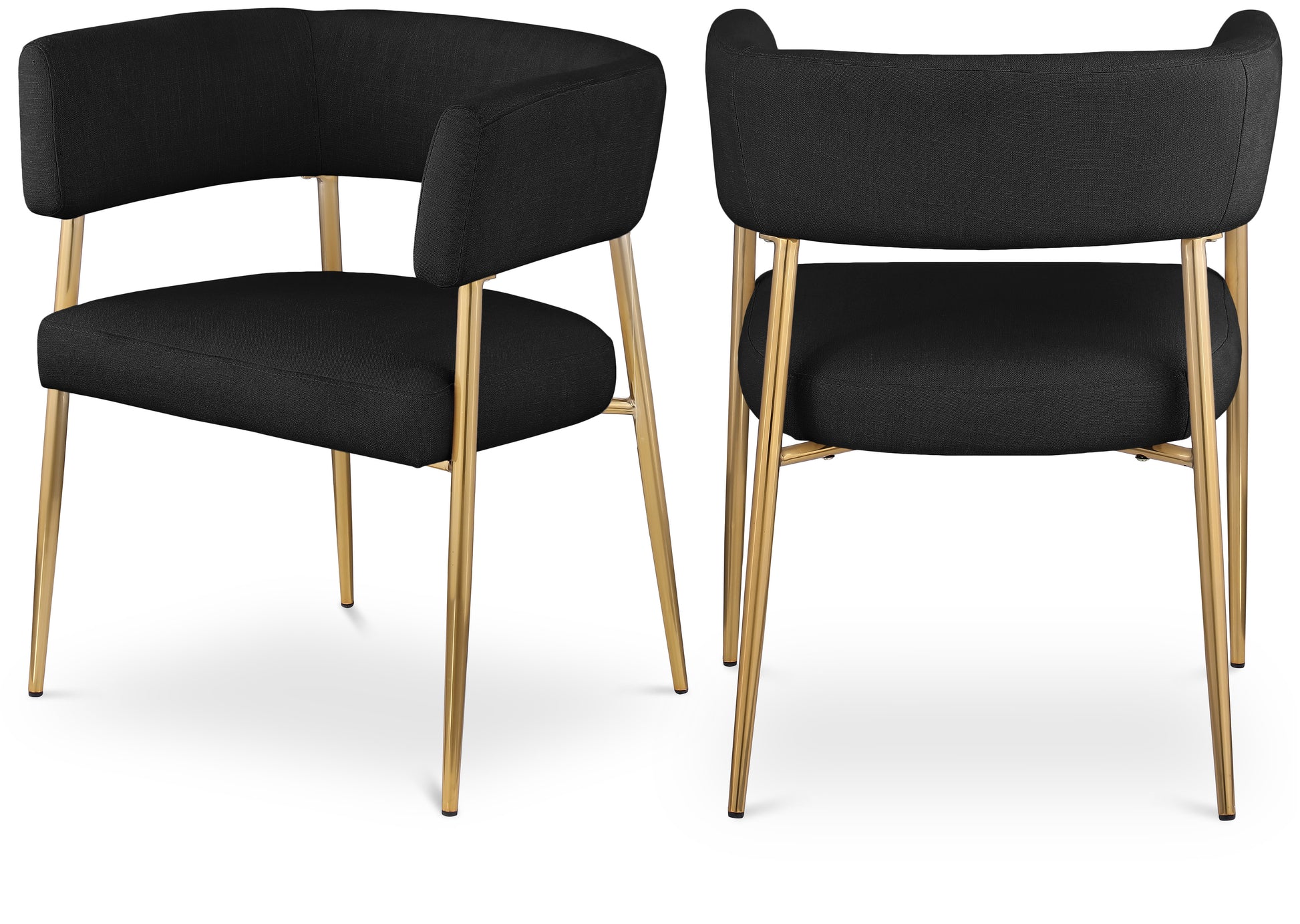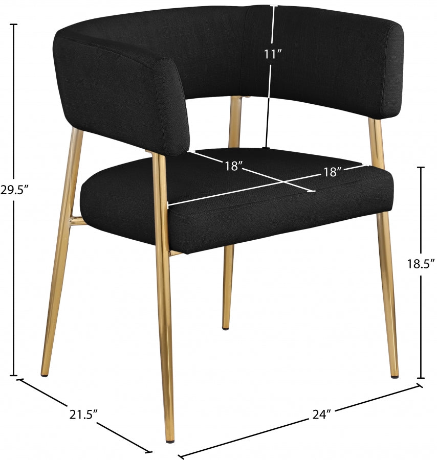 Imagez votre salle à manger avec la chaise de restauration en tissu texturé en lin Creston. Rempli en tissu texturé en lin durable noir riche, cette chaise à manger est non seulement élégante mais aussi conçue pour durer. Le cadre en métal doré brossé ajoute une touche de luxe, complétant parfaitement son design contemporain. Le siège coussin et coussin en peluche incurvé assure une expérience culinaire accueillante et confortable. Que ce soit pour les repas quotidiens ou les occasions spéciales, la chaise de restauration Creston combine l'esthétique moderne et le confort.