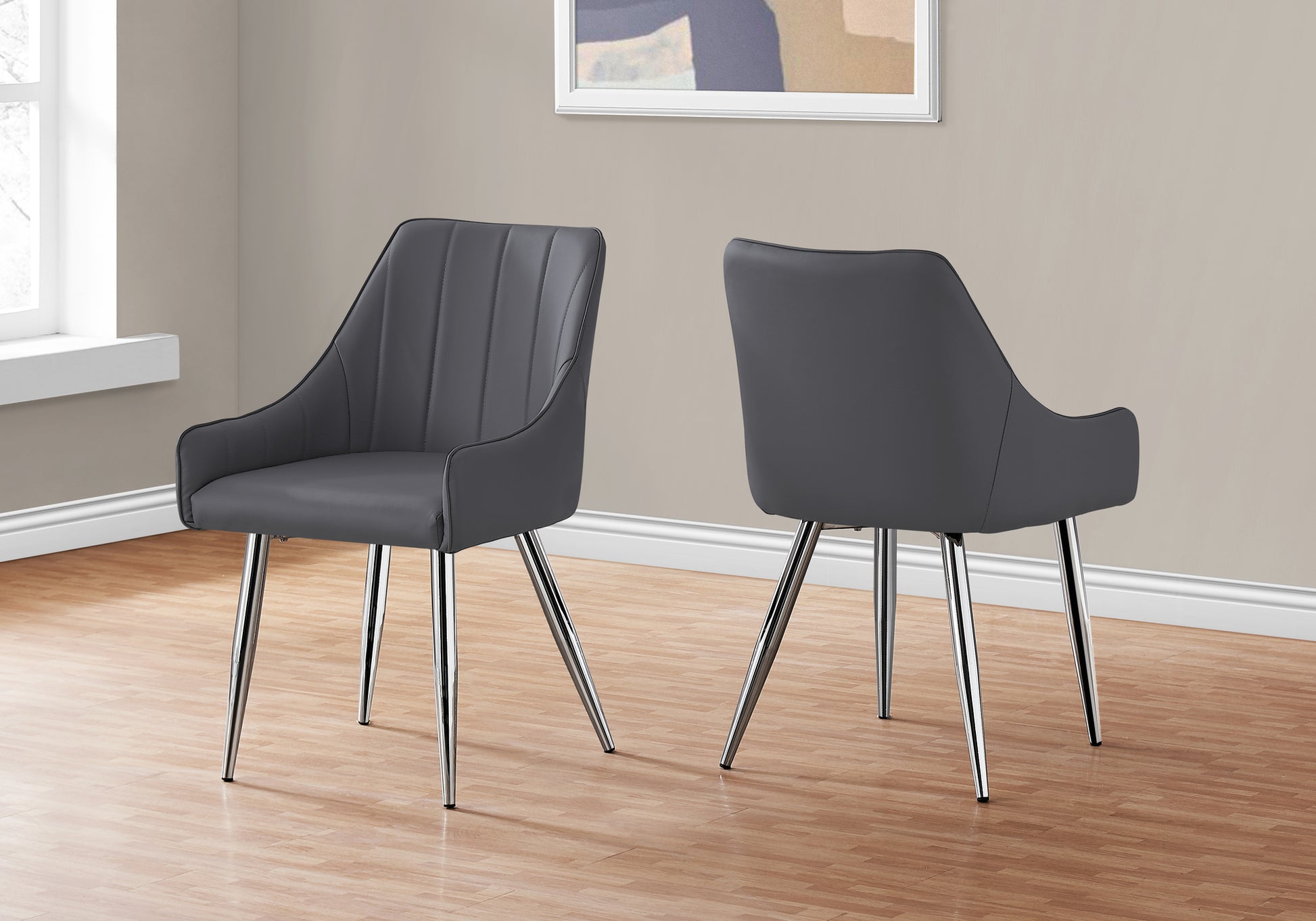 CHAISE DE SALLE A MANGER - 2PCS / 33"H / SIMILI-CUIR GRIS / CHROME