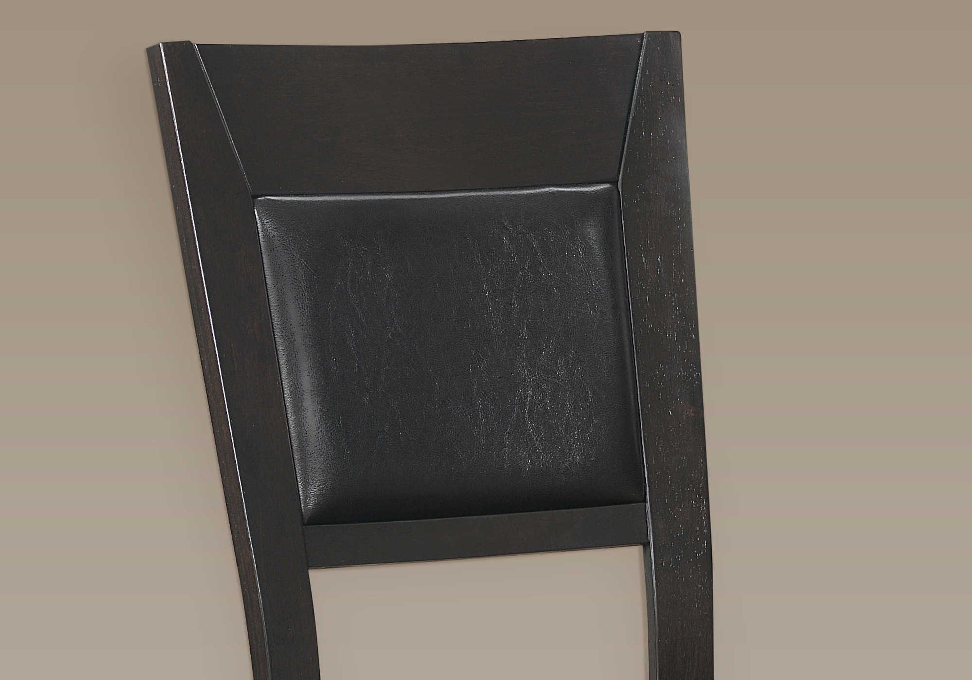 Faites de cet ensemble de deux chaises de salle à manger le complément parfait à l'apparence générale de votre salle à manger. Avec un rembourrage généreuxment rembourré, les chaises sont recouvertes d'un matériau en similicuir facile à nettoyer. Les cadres en bois massif sont finis dans une couleur brun foncé pour compléter les sièges. Ces deux chaises de salle à manger sont conçues pour le confort et la polyvalence, adaptées à toutes les petites maisons, condos ou appartements.