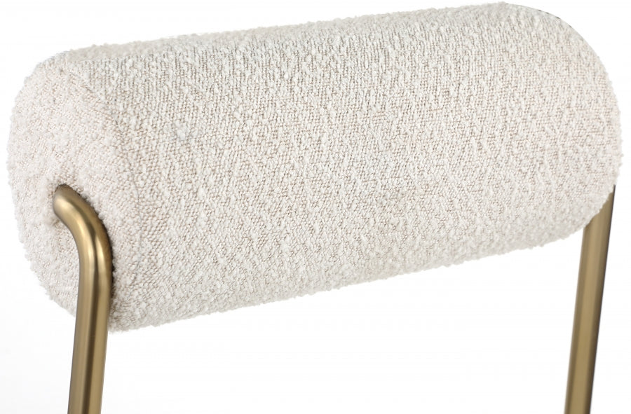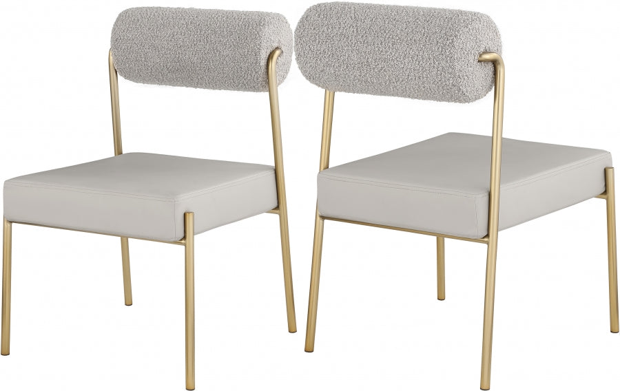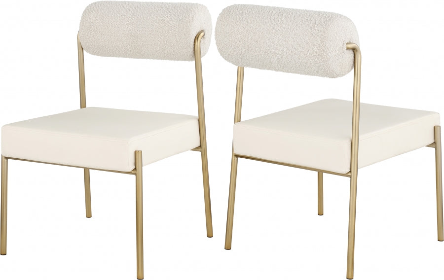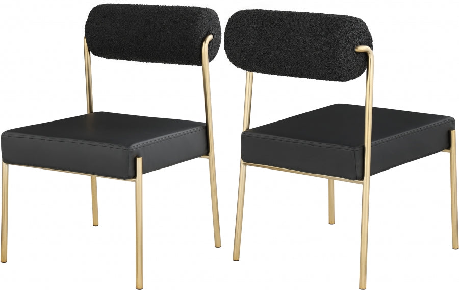 Élégante et accrocheuse, la superbe chaise de salle à manger Carly en similicuir avec dossier en tissu bouclé de Meridian Furniture est le complément parfait à tout espace.