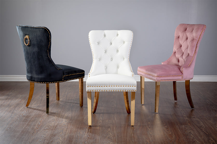 recouverts de têtes de clous dorés et d'une poignée arrière dorée.