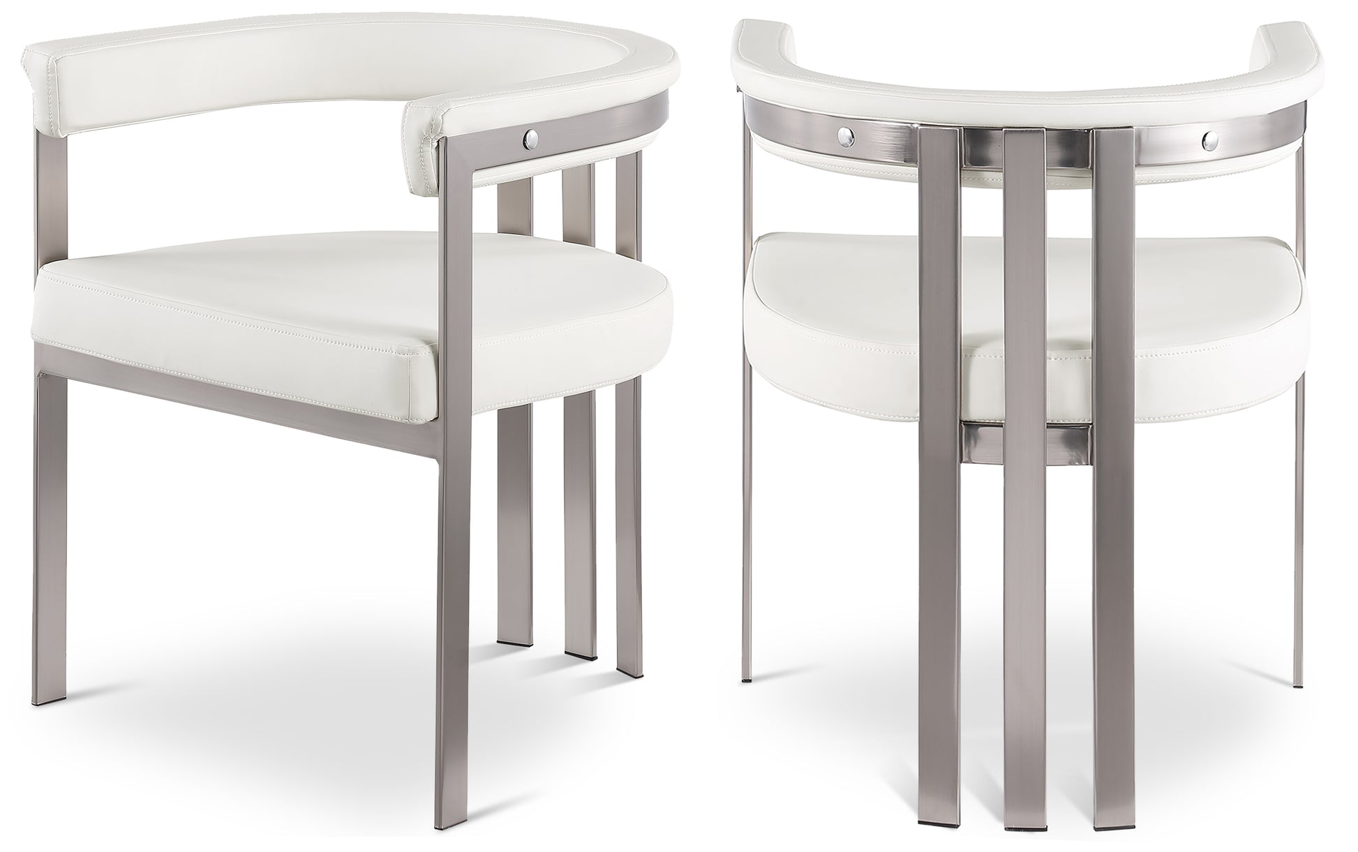 Transformez votre espace salle à manger en un havre contemporain avec cette chaise de salle à manger en cuir végétalien Marcello. Son cuir végétalien doux et haut de gamme est doux sur lequel vous pouvez vous asseoir, tandis que son cadre en fer chromé brossé assure une durabilité pour les années à venir. Son dossier incurvé offre un soutien lorsque vous êtes assis et savourez votre repas, afin que votre dos ne se fatigue pas ou ne vous fasse pas mal pendant que vous mangez. Son design incurvé et contemporain est parfait pour toute maison moderne.