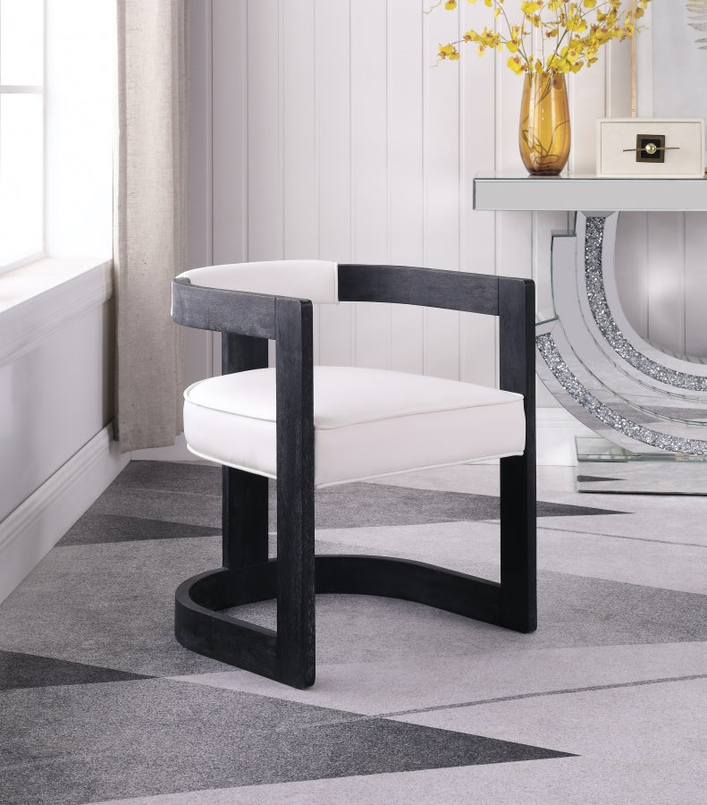 Les invités seront trop impressionnés lorsque vous les assiérez dans cette chaise de salle à manger en velours Regency. La construction en bois massif donne à la chaise un départ durable tandis que sa finition gris foncé lui donne un look haut de gamme, presque aisé. Cette chaise contemporaine est équipée d'un doux rembourrage en velours blanc contre son dossier et son siège arrondis, assurant le confort pendant que vous dînez.